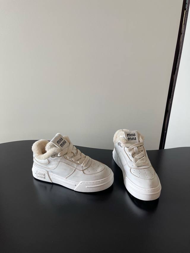 Miumiu latest distressed retro fashion German training Corsair platform casual shoes white sneakers