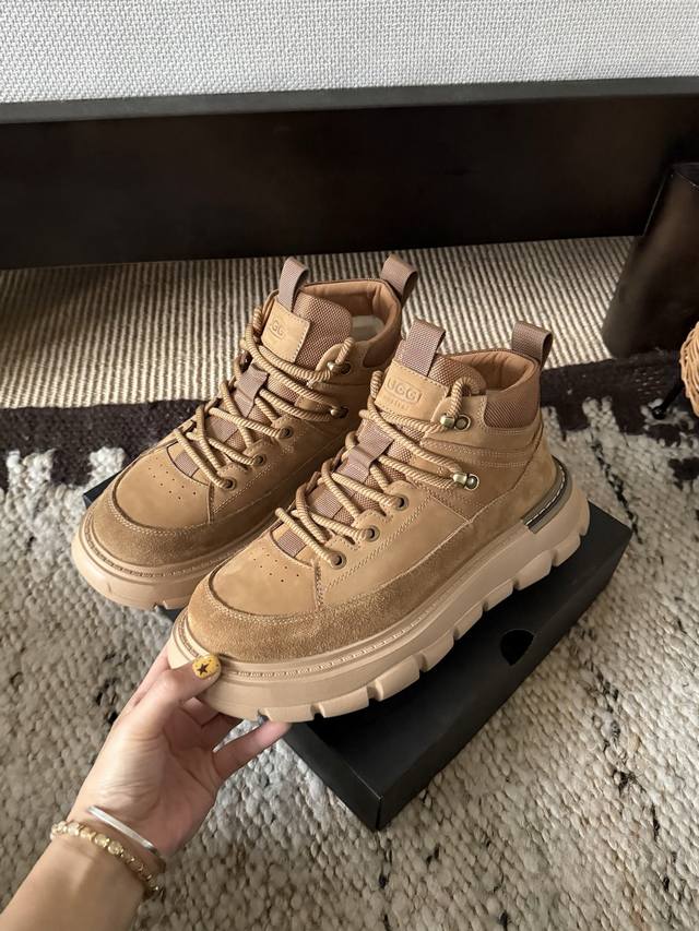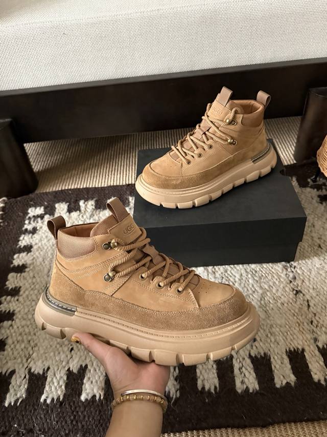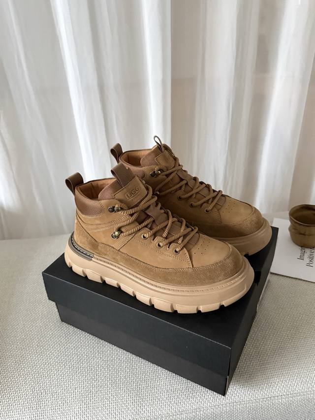 Xy-8025 Men's Workwear Shoes with a serrated heel. These shoes feature a stylish design with leather patchwork material. The custom-molded outsole provides invisible height, making them very comfortable to wear. The upper is made of custom cowhide, and the lining is genuine wool, making them perfect for autumn and winter. They are versatile and not bulky, a must-have for stylish men this autumn and winter. Sizes: 39-44