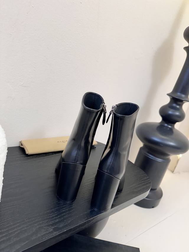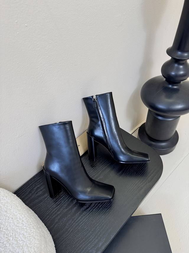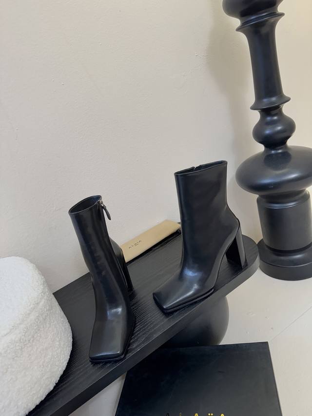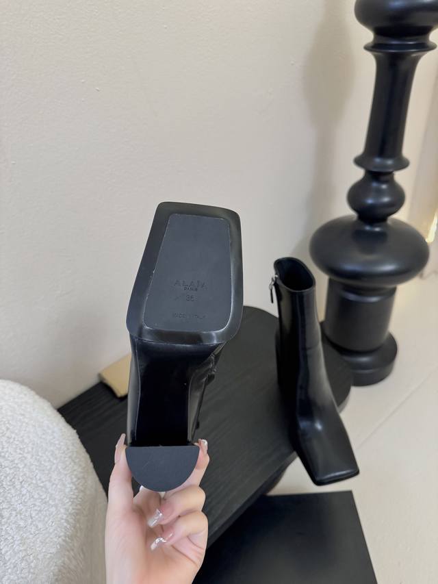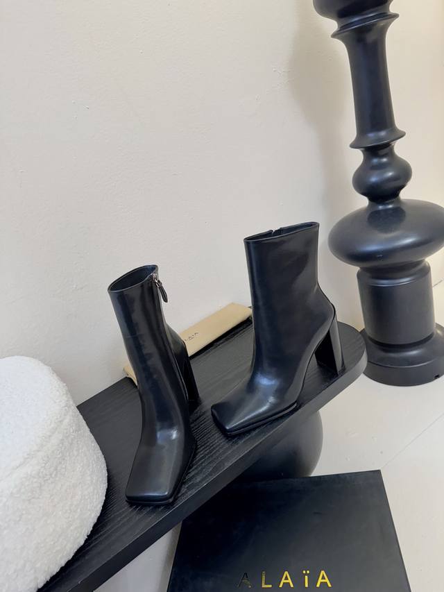 2025 Autumn/Winter New Arrival Alaia Minimalist Chic Side Zipper Chunky Heel Square Toe Ankle Boots. Fashionistas are searching for a pair of ankle boots that balance comfort and style, and these are undoubtedly the best answer this season! The classic square toe design breaks away from the constraints of traditional lasts, giving toes free space to stretch, adding a touch of strength and sophistication to the overall look. Whether paired with skirts or trousers, they easily enhance the style. The chunky heel design is a stroke of genius; the height is just right, adding a sense of elegance while ensuring stability and comfort during walking, preventing fatigue even after long periods of wear. Whether navigating bustling city streets or rushing to important business occasions, these boots are your most reliable fashion partner. In terms of styling, these ankle boots are incredibly versatile. Paired with simple straight-leg jeans, they create a casual American style; combined with a knitted dress, they exude a gentle and elegant French flair. Effortlessly adaptable to various occasions, they become the finishing touch to autumn and winter outfits. Upper: Cowhide; Insole: Cowhide; Outsole: Italian genuine leather; Sizes: 35-39; Sizes 40 and 41 are custom-made and non-refundable.