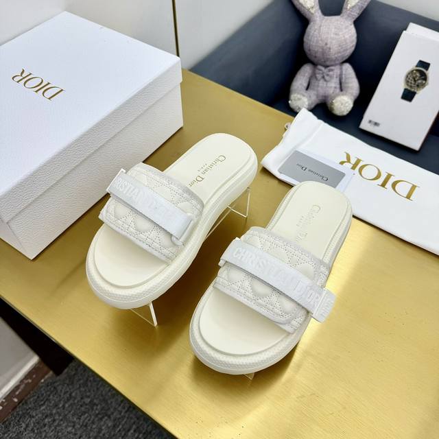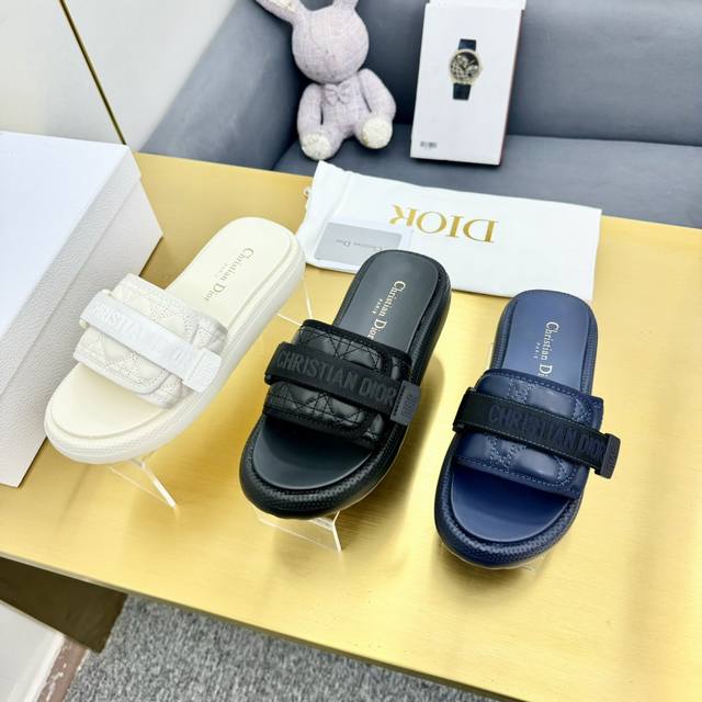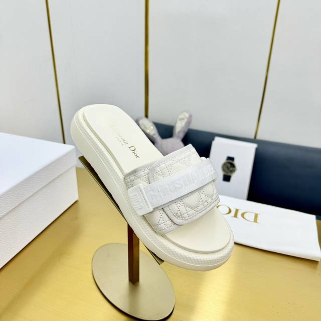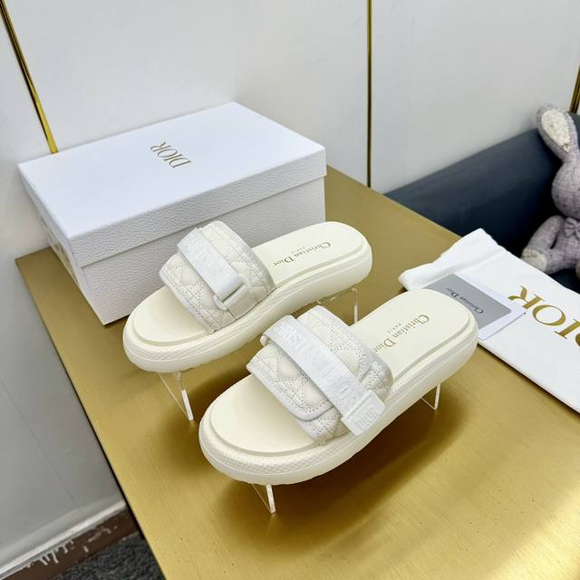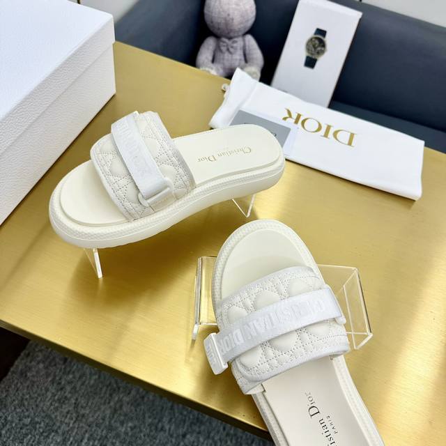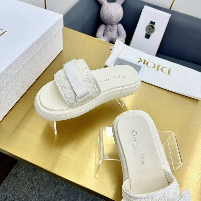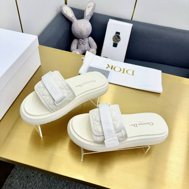 . These Dio R Evolution sandals are a new addition to the Fall 2024 ready-to-wear collection, part of the Dio*Eviera limited edition collection. They feature a leather-effect upper with a quilted rattan check pattern and an adjustable Velcro strap in technical fabric embellished with the Christian Dio* logo. The lightweight, thick-soled design easily coordinates with other pieces from the Dio*Iviera limited edition collection.