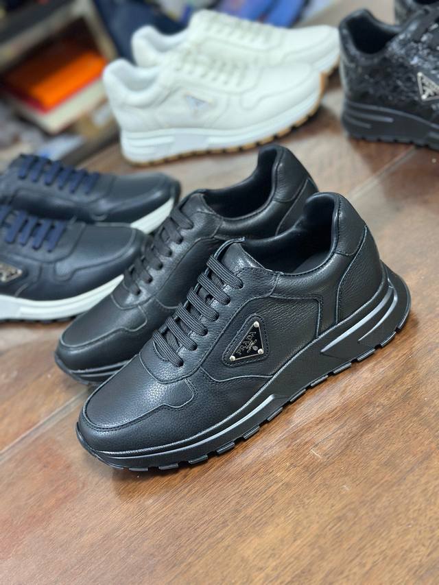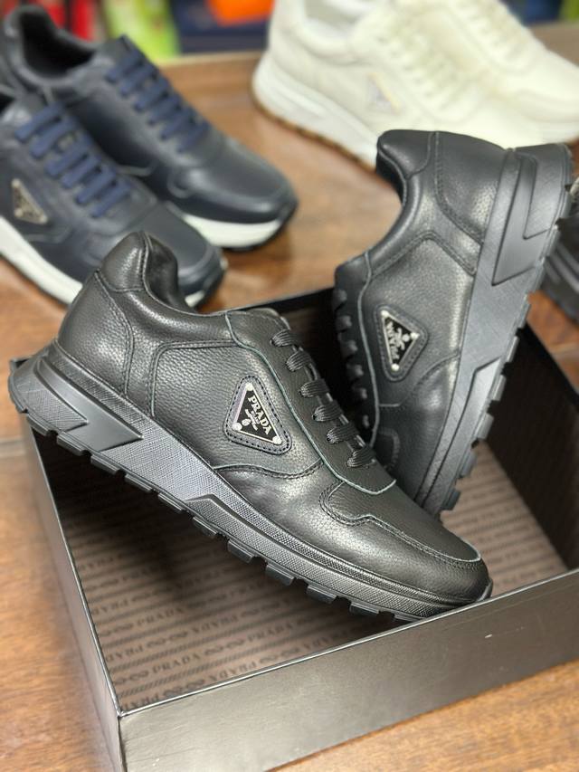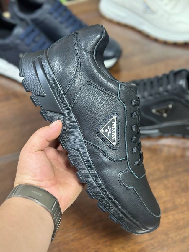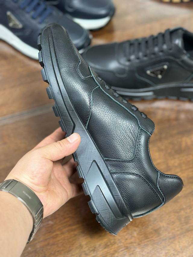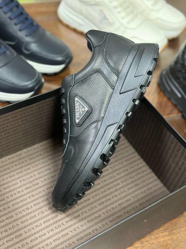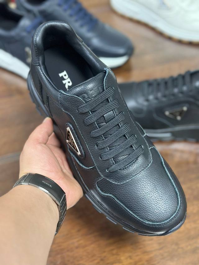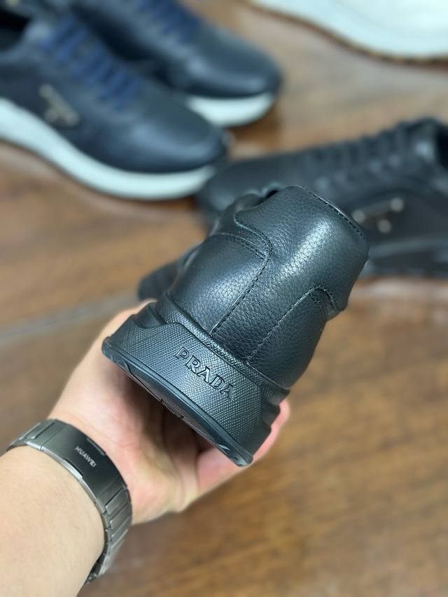 Actual Price: Pra 2.0 sneakers are crafted from premium perforated leather with a lightweight sole, offering a modern and dynamic look. The iconic triangular logo adds a touch of sophistication and elegance. Features include: Eco-friendly leather upper, lining, enamel triangular metal logo, laces, TPU molded outsole, and removable insole.