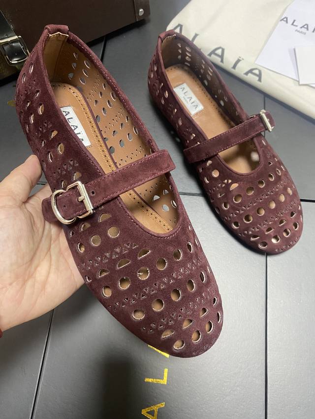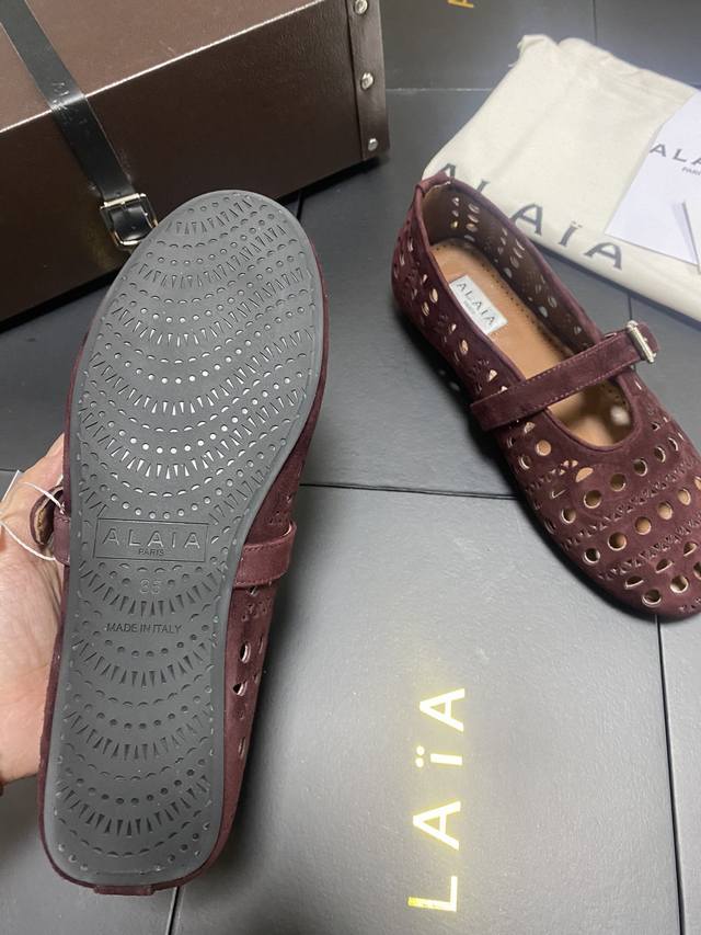 Alaia Runway Style Flat Ballet Flats! A super popular ballet flat with a sweet and cool ballet style, romantic, charming, comfortable, and versatile. Made of lambskin in a wine red color. Features a custom-molded rubber non-slip outsole. Sizes: 35-42, 40, 41, 42. Custom orders are non-refundable.