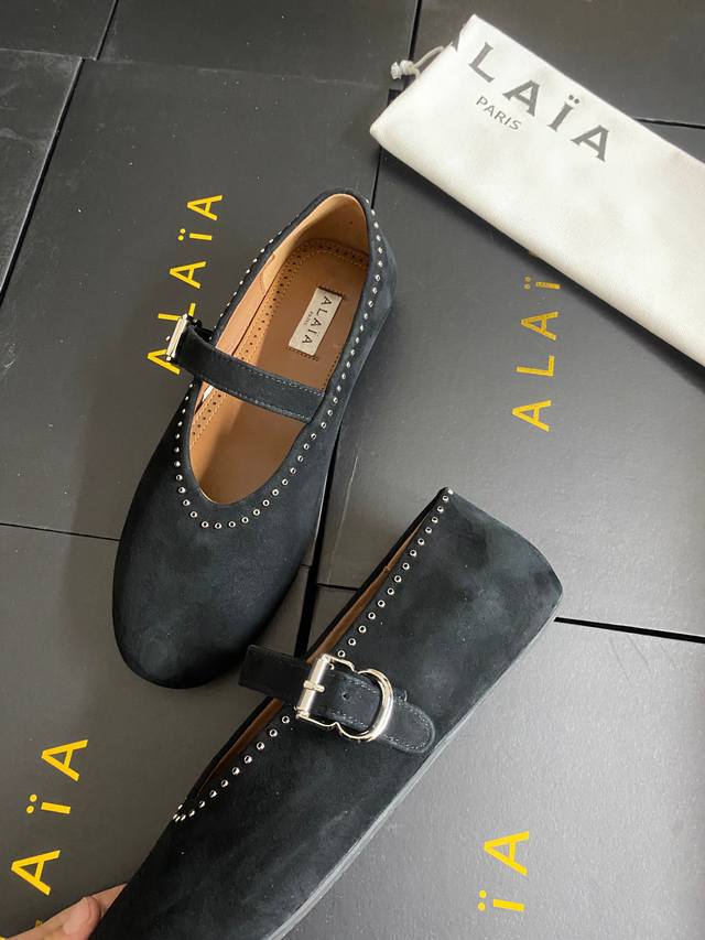 Alaia runway style flat ballet flats! A super popular ballet flat with a sweet and cool ballet style, romantic, charming, comfortable, and versatile. Made with original custom-made cowhide with Swarovski crystal upper, sheepskin lining, and custom-molded rubber non-slip outsole. Sizes: 35-41. Sizes 40 and 41 are custom-made and non-refundable.