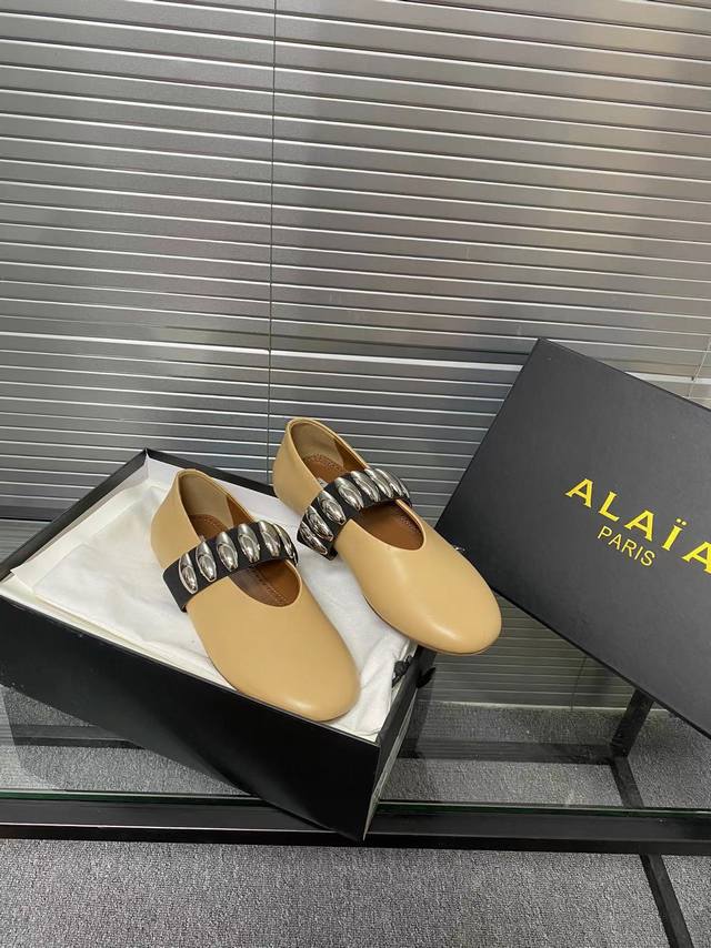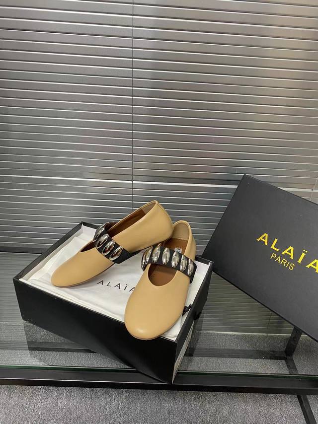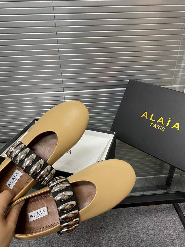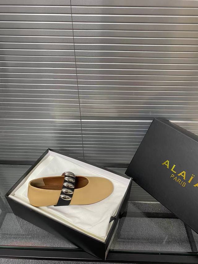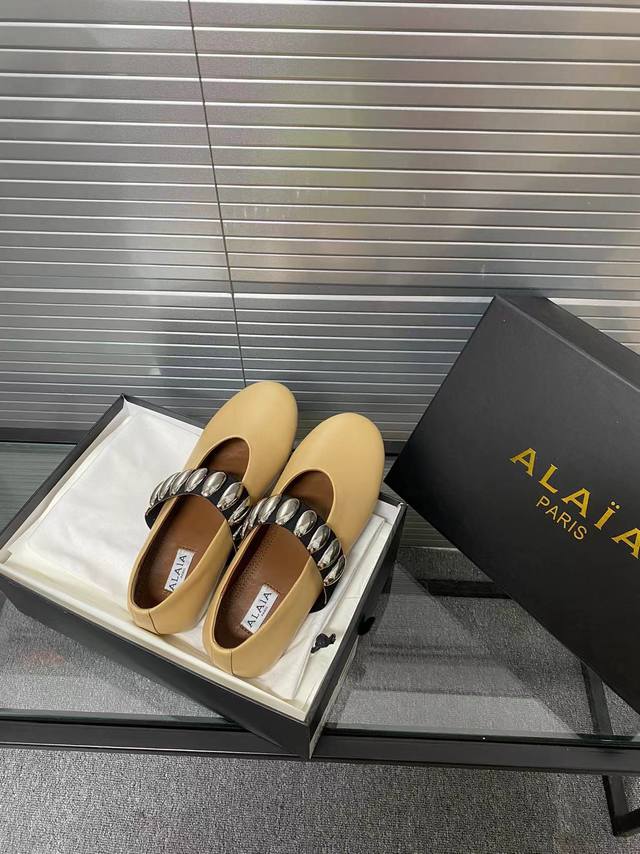 Alaia runway style flat ballet flats! A super popular ballet flat with a sweet and cool ballet style, romantic, charming, comfortable, and versatile. Made with original custom-made cowhide with Swarovski crystal upper, sheepskin lining, and custom-molded rubber non-slip outsole. Sizes: 35-41. Sizes 40 and 41 are custom-made and non-refundable.