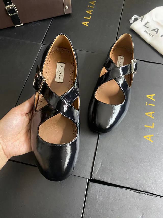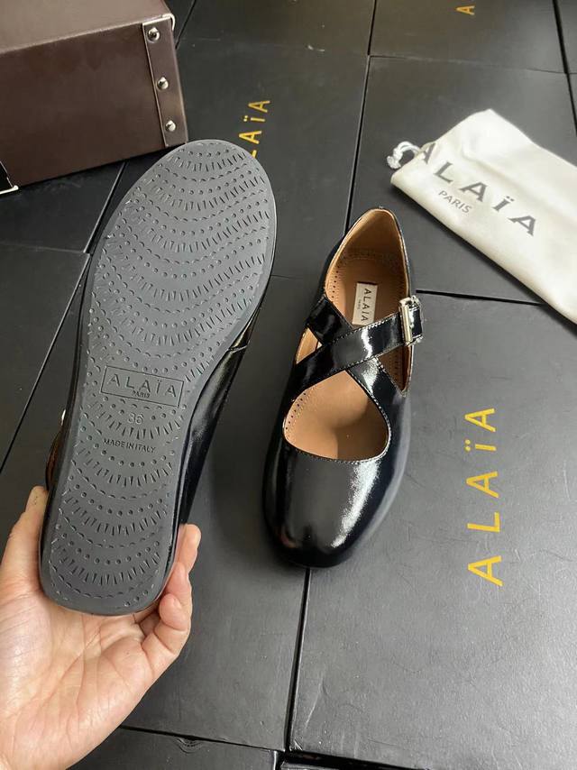 Alaia runway style flat ballet flats! A super popular ballet flat with a sweet and cool ballet style, romantic, charming, comfortable, and versatile. Made with original custom-made cowhide with Swarovski crystal upper, sheepskin lining, and custom-molded rubber non-slip outsole. Sizes: 35-41. Sizes 40 and 41 are custom-made and non-refundable.