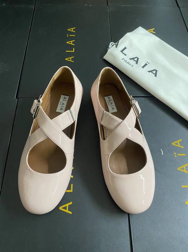 Alaia runway style flat ballet flats! A super popular ballet flat with a sweet and cool ballet style, romantic, charming, comfortable, and versatile. Made with original custom-made cowhide with Swarovski crystal upper, sheepskin lining, and custom-molded rubber non-slip outsole. Sizes: 35-41. Sizes 40 and 41 are custom-made and non-refundable.