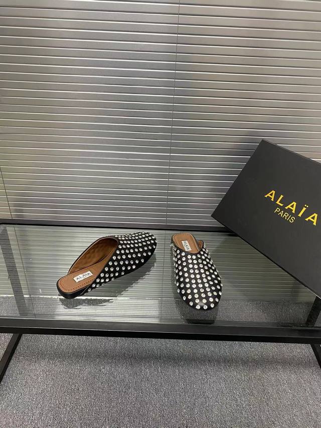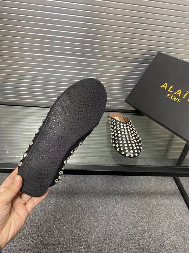 Alaia runway style flat ballet flats! A super popular ballet flat with a sweet and cool ballet style, romantic, charming, comfortable, and versatile. Made with original custom-made cowhide with Swarovski crystal upper, sheepskin lining, and custom-molded rubber non-slip outsole. Sizes: 35-41. Sizes 40 and 41 are custom-made and non-refundable.