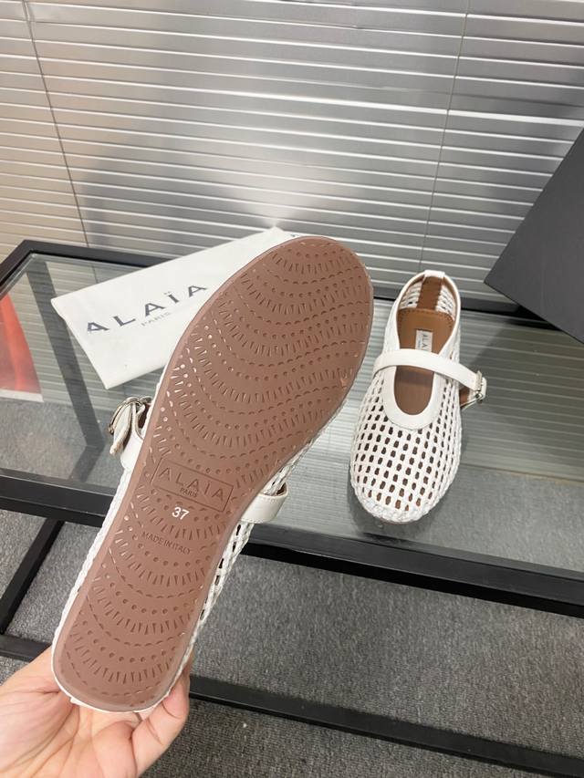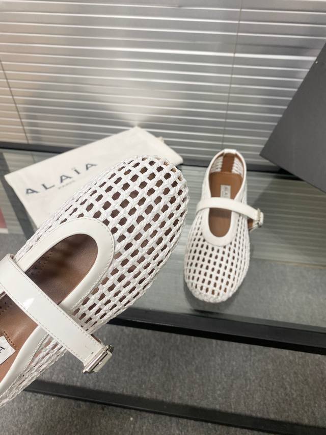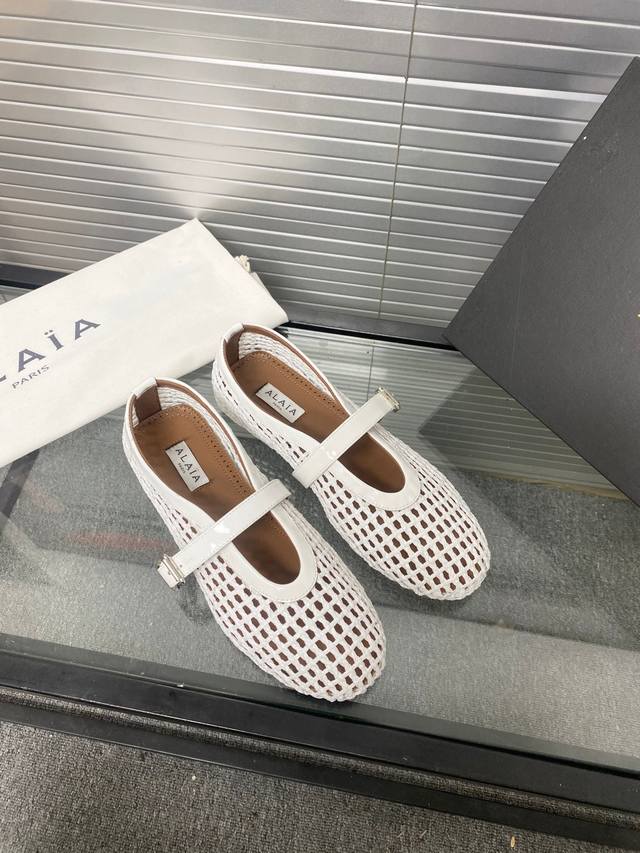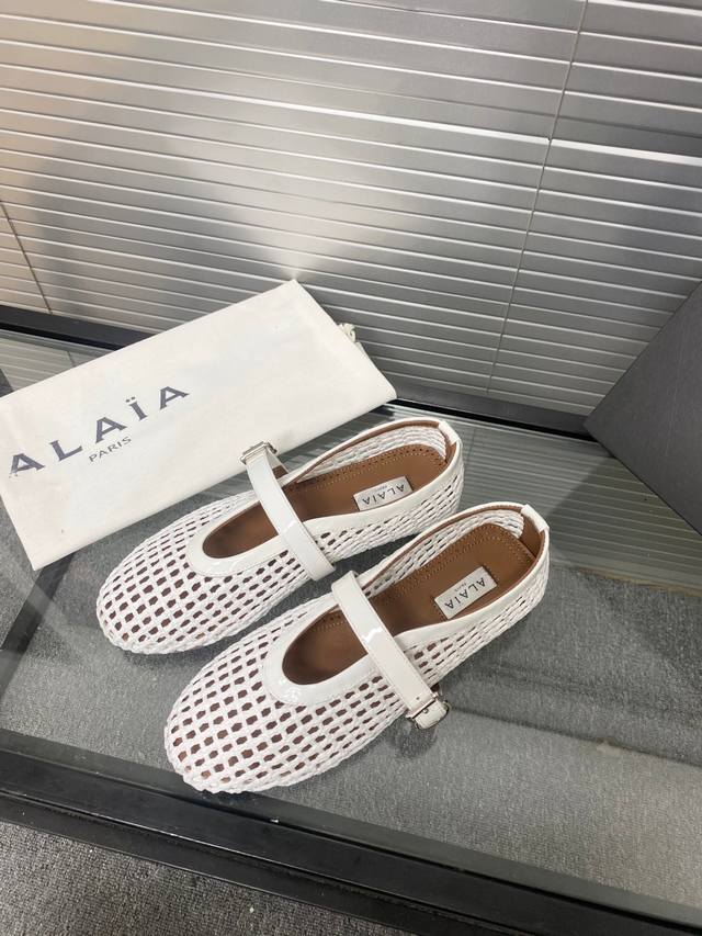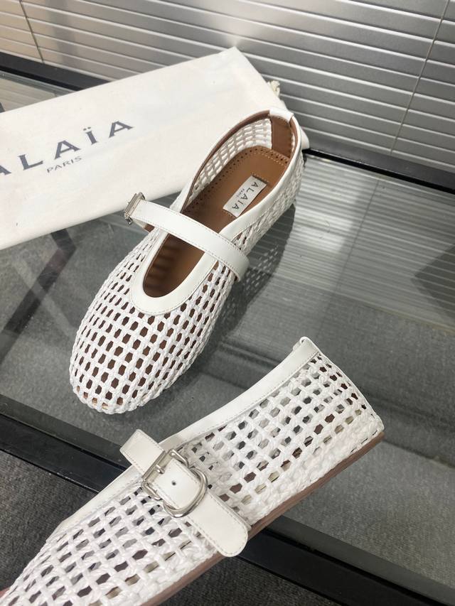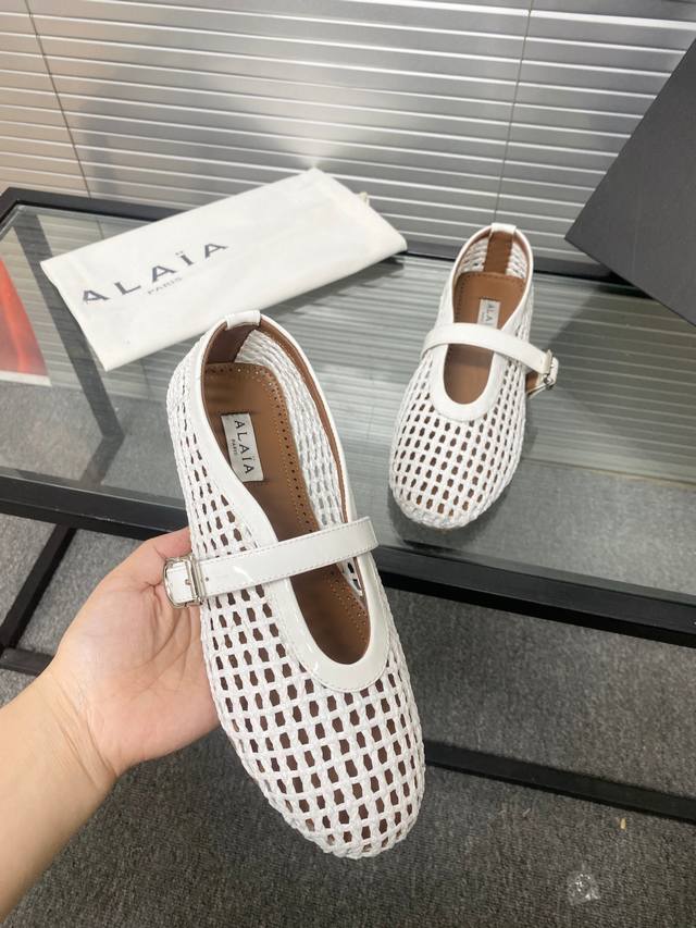 Alaia runway style flat ballet flats! A super popular ballet flat with a sweet and cool ballet style, romantic, charming, comfortable, and versatile. Made with original custom-made cowhide with Swarovski crystal upper, sheepskin lining, and custom-molded rubber non-slip outsole. Sizes: 35-41. Sizes 40 and 41 are custom-made and non-refundable.