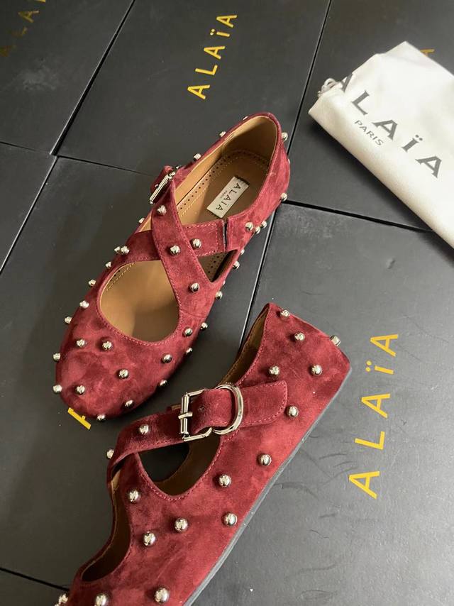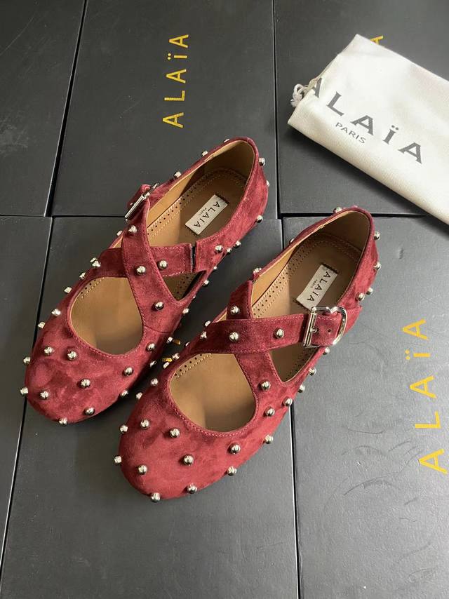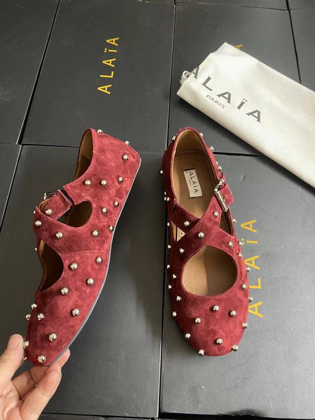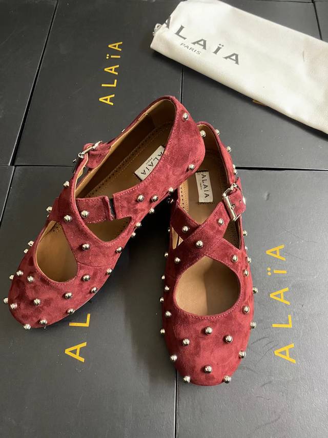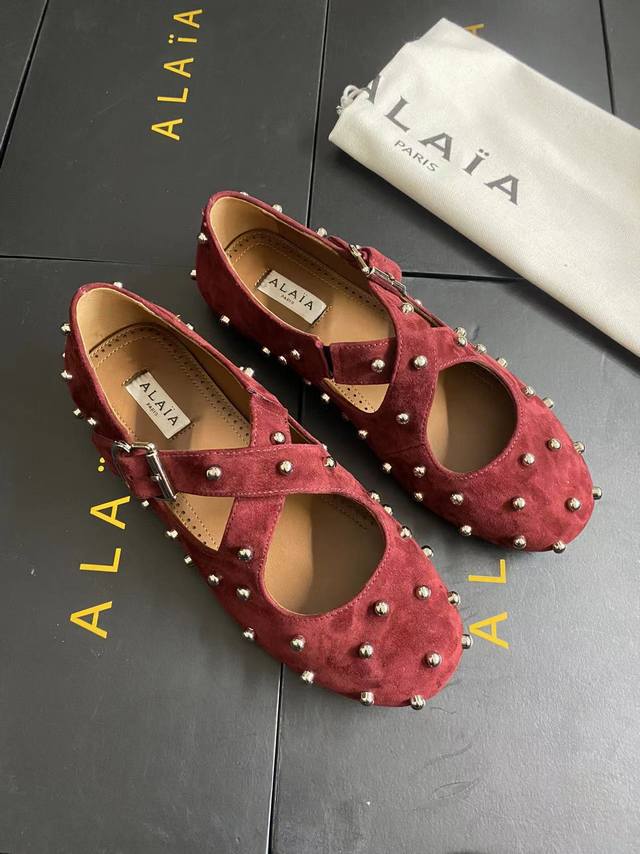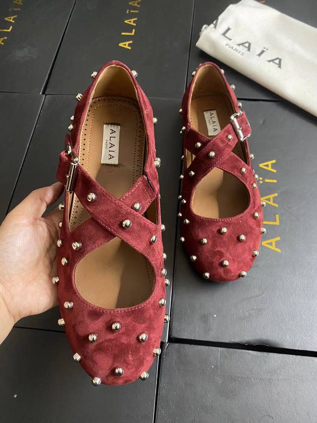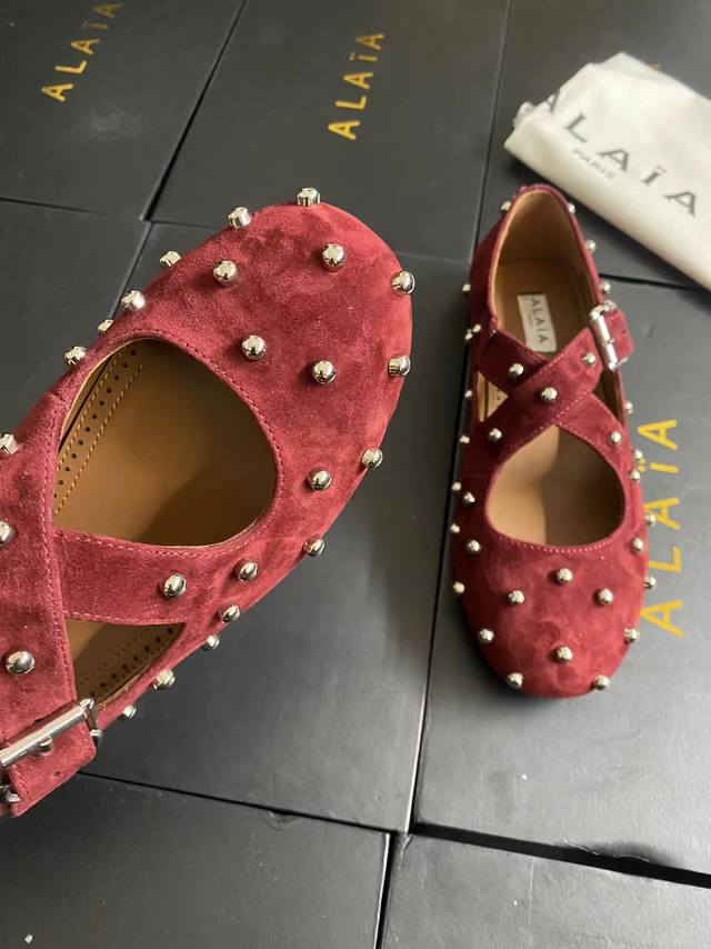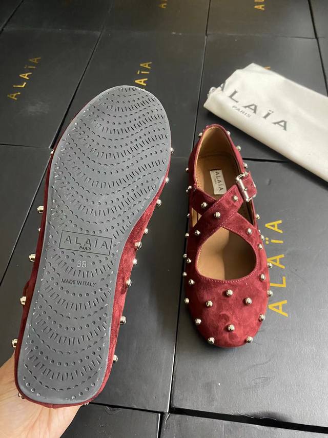 Alaia runway style flat ballet flats! A super popular ballet flat with a sweet and cool ballet style, romantic, charming, comfortable, and versatile. Made with original custom-made cowhide with Swarovski crystal upper, sheepskin lining, and custom-molded rubber non-slip outsole. Sizes: 35-41. Sizes 40 and 41 are custom-made and non-refundable.