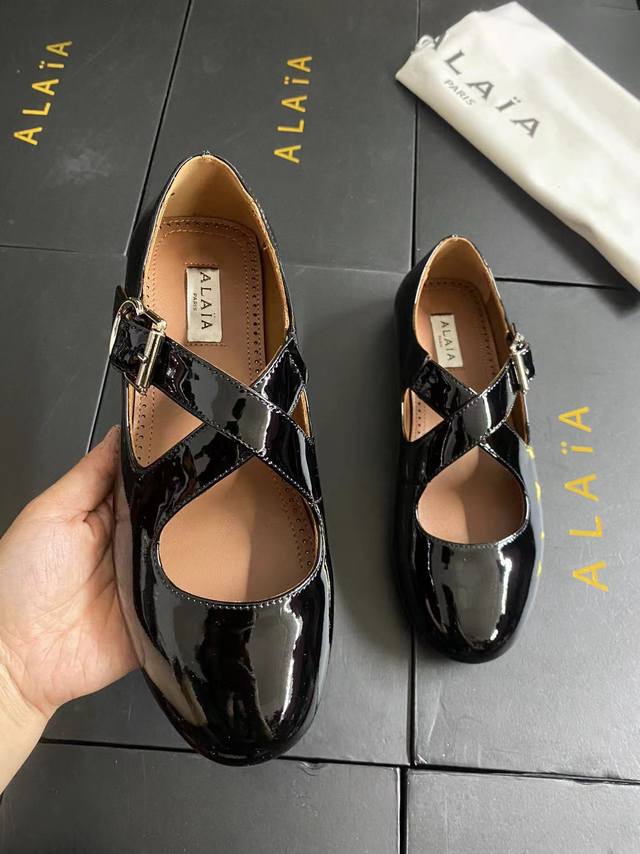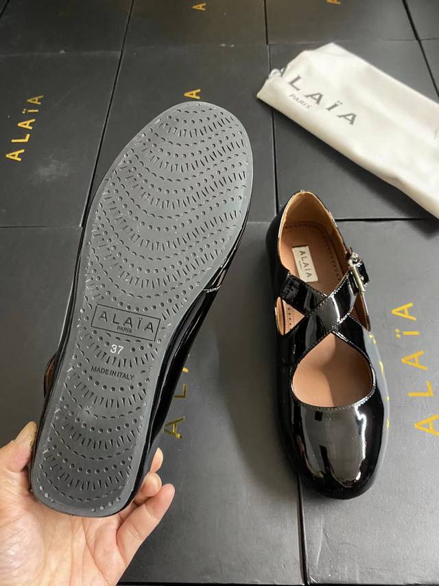 Alaia runway style flat ballet flats! A super popular ballet flat with a sweet and cool ballet style, romantic, charming, comfortable, and versatile. Made with original custom-made cowhide with Swarovski crystal upper, sheepskin lining, and custom-molded rubber non-slip outsole. Sizes: 35-41. Sizes 40 and 41 are custom-made and non-refundable.