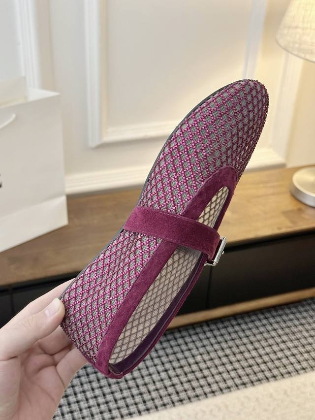 Aleia ballet flats, quirky and adorable! Addictive to the collection, like collecting stamps, one pair isn't enough! Sweet and cool, the openwork upper is delicate yet retains the brand's elegant style. The studded version is incredibly fashionable. The shoe shape is more delicate than the rhinestone version. The mesh version is especially comfortable and perfect for summer. Absolutely gorgeous! Upper material: Mesh. Lining material: Sheepskin . Sole material: Original molded rubber sole. Size selection: 35-40. This style is custom-made and non-refundable, regardless of whether it has a tag or not.