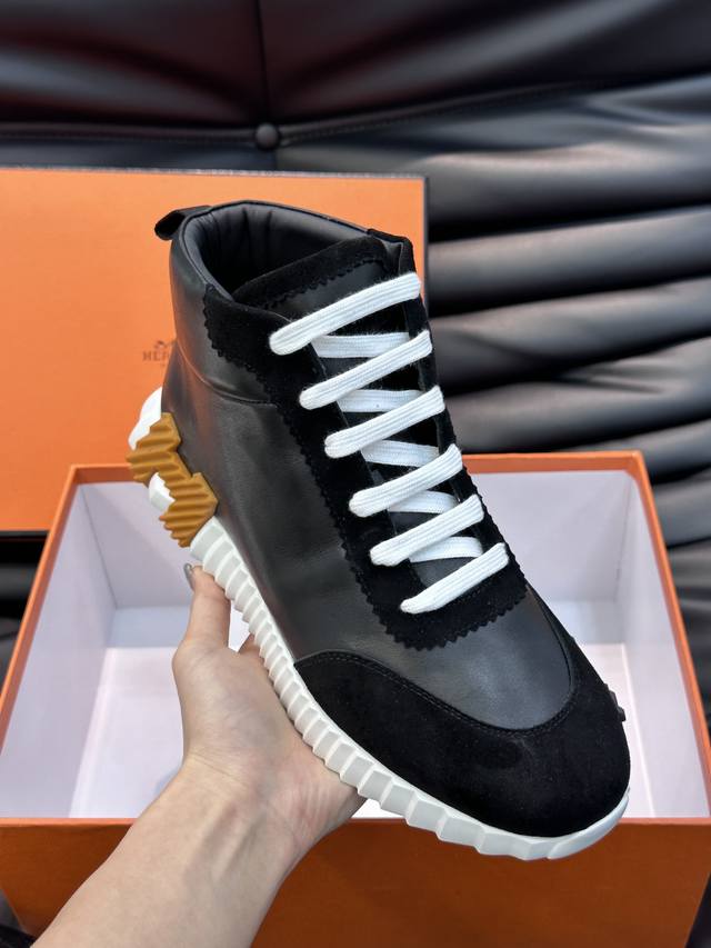 Autumn/Winter High-Top Men's Casual Sneakers, made with imported top-grain cowhide, featuring imported lambskin insole for softness and comfort, TPU outsole, premium quality, worth buying! Size: 38-45 DDD