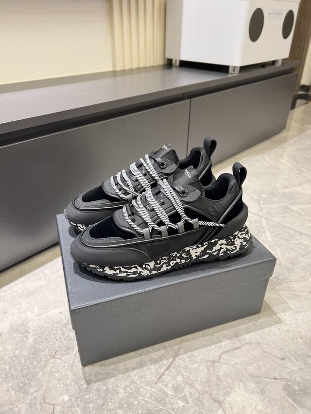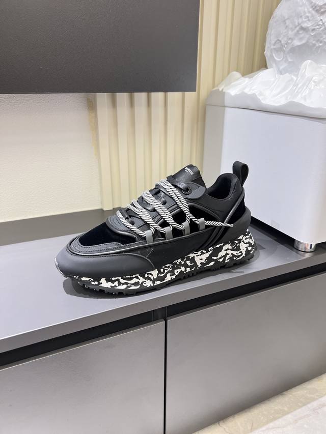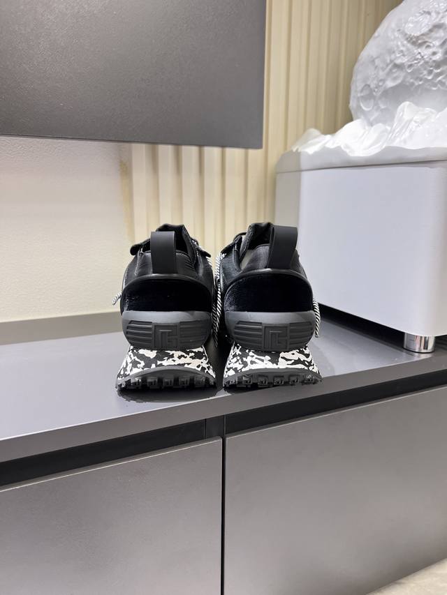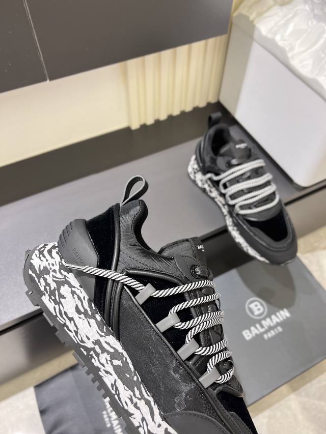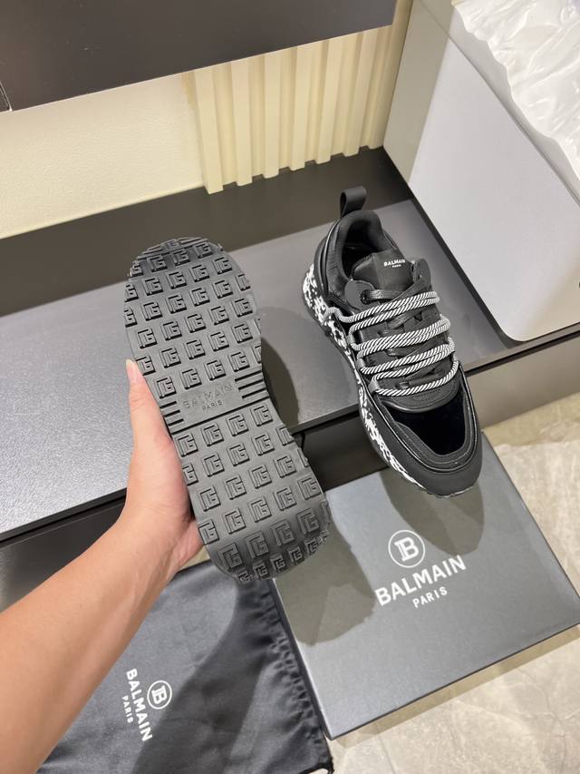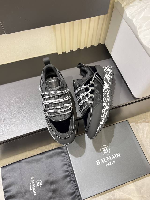 Balmain Men's Casual Sneakers. Balmain is known for its bold and visionary silhouettes, designed to empower the wearer. This shoe features a calfskin and suede upper, a genuine leather lining, and a comfortable, supportive fit. It's breathable, stylish, and features Balmain logo details on the tongue, 3D lettering on the toe and heel, and a solid-color Balmain logo on the TPU sole. Sizes: 38-44, 45 (custom orders accepted).