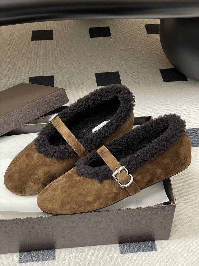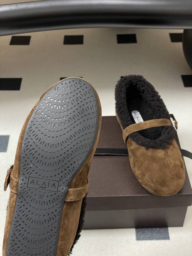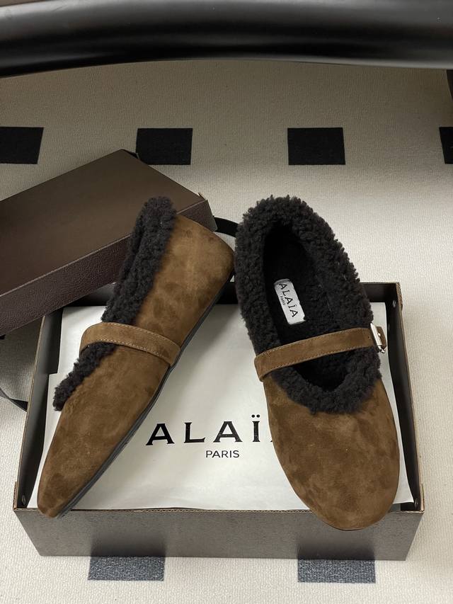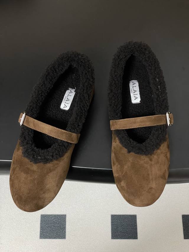 Belt Box 20 Order Notes: Default is Ordinary Box DDD 25Fw Autumn/Winter New Alaia Lambswool French Ballet Flats Suede Mary Jane Flats Old Money Style DDD Originally more feminine and romantic ballet flats are now made with suede uppers, giving traditional ballet style more possibilities and allowing for better integration with contemporary fashion. DDD Feminine ballet elements are not limited to one style; a balance of strength and grace, both elegant and powerful, is the best way to wear ballet flats. Every detail showcases French refinement. DDD perfectly blends cuteness with a leg-slimming effect, allowing you to enjoy warmth and exude captivating charm in the cold winter. The upper is made of soft and delicate suede, as warm as the winter sun. The lamb's wool lining is not only soft to the touch but also enhances the winter atmosphere, making every step feel like walking on clouds. Upper: High-gloss cow suede; Insole: Lambswool; Outsole: Original molded rubber outsole; Sizes: 35-39, 40, 41, 42 (Made to order, no returns or exchanges).