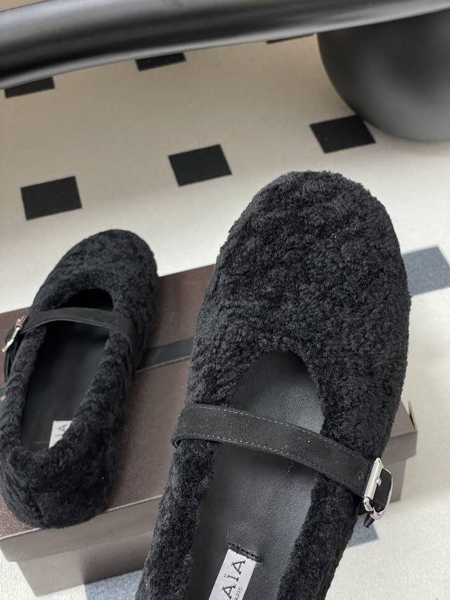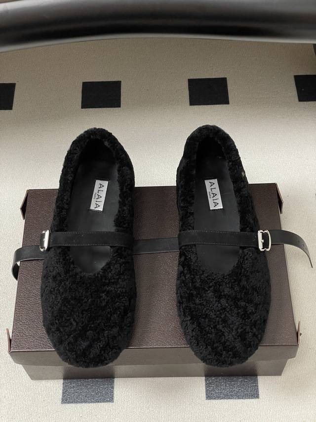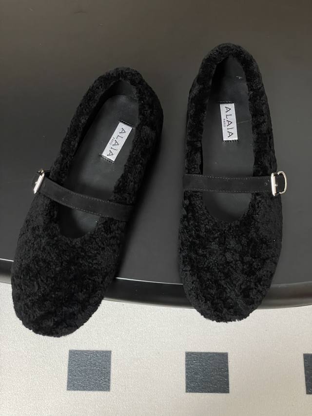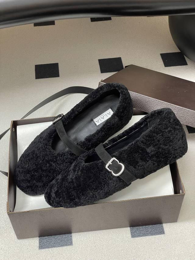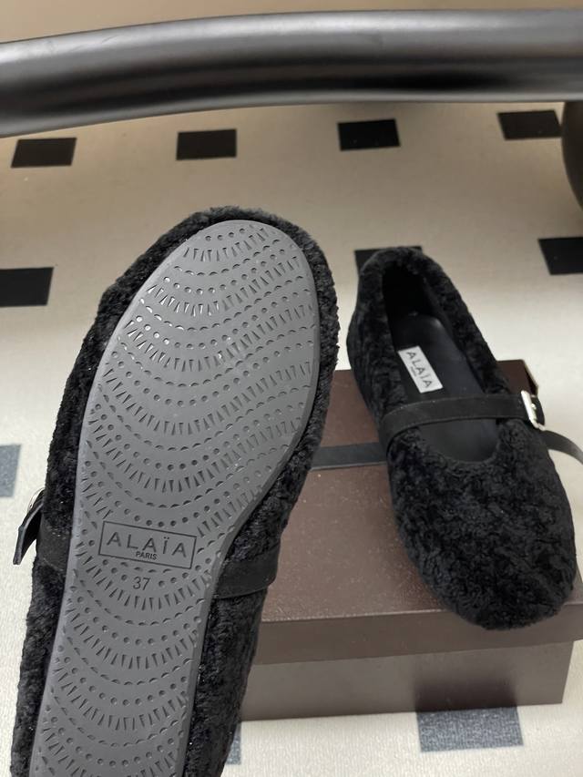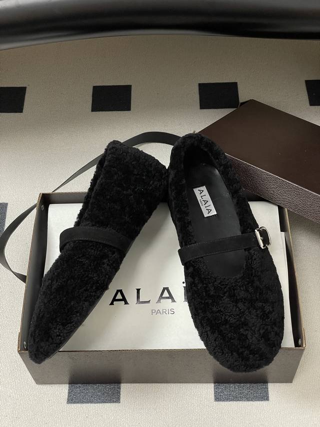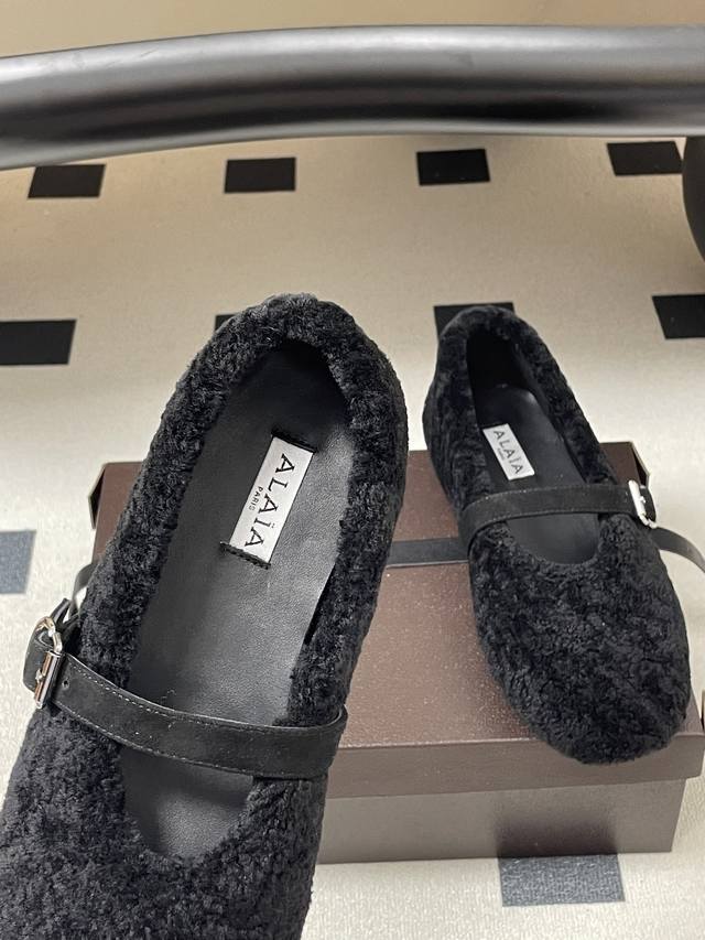 25Fw Autumn/Winter New Alaia Lambswool French Ballet Flats, Wool Mary Jane Flats, Old Money Style