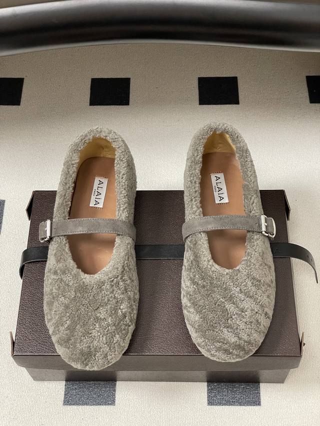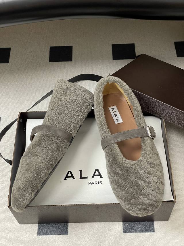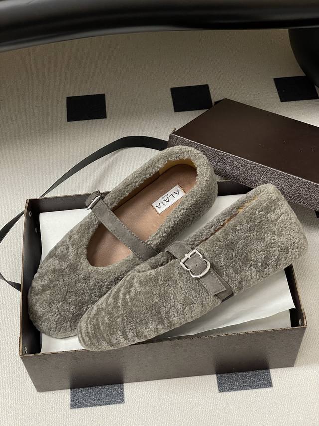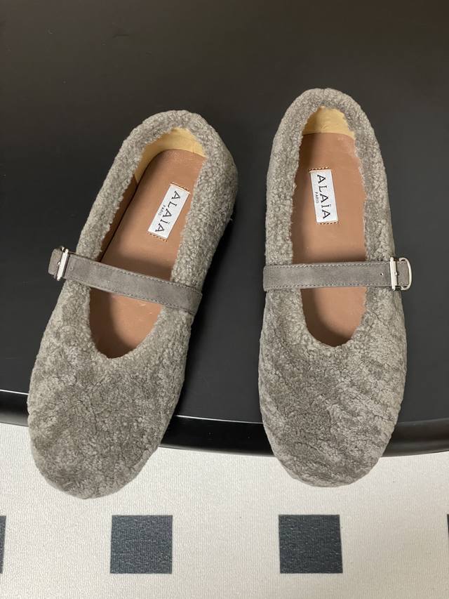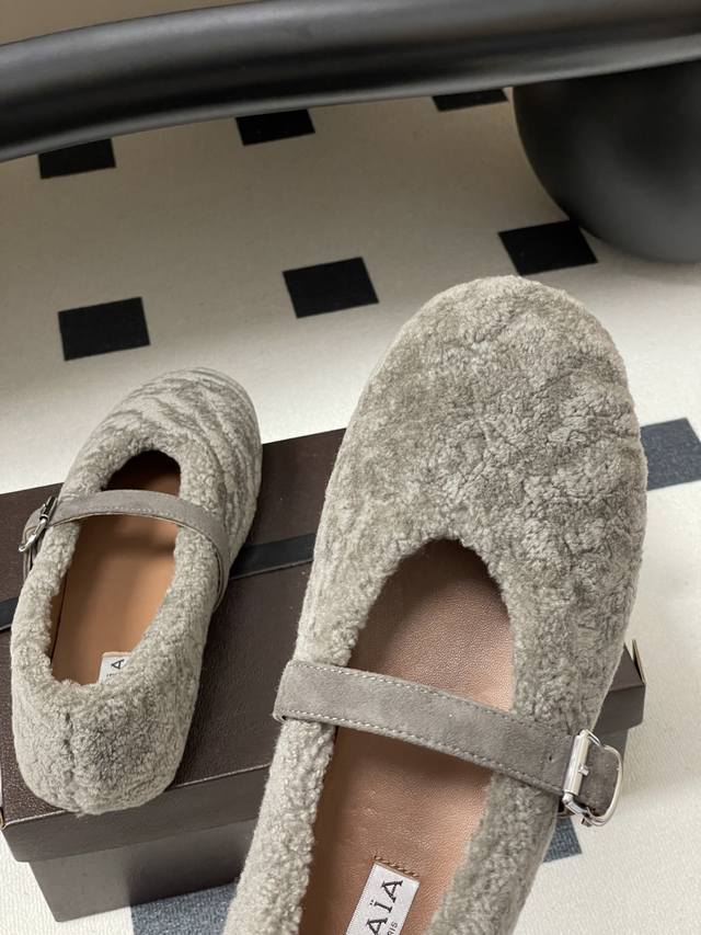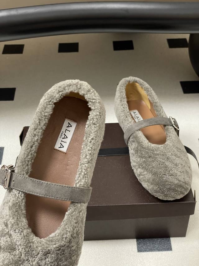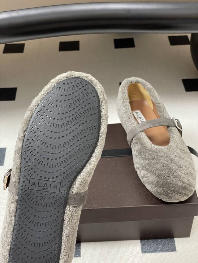 25Fw Autumn/Winter New Alaia Lambswool French Ballet Flats, Wool Mary Jane Flats, Old Money Style