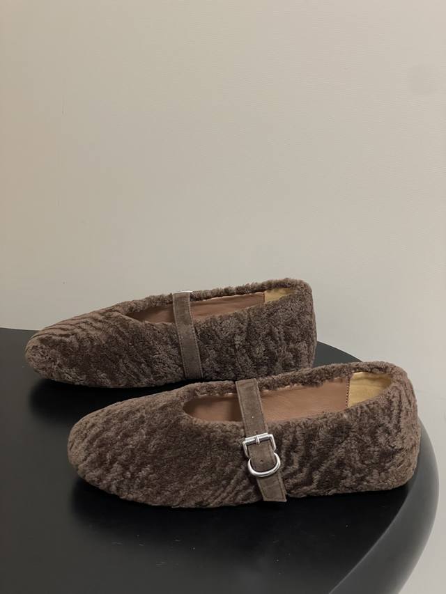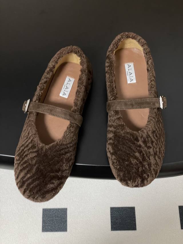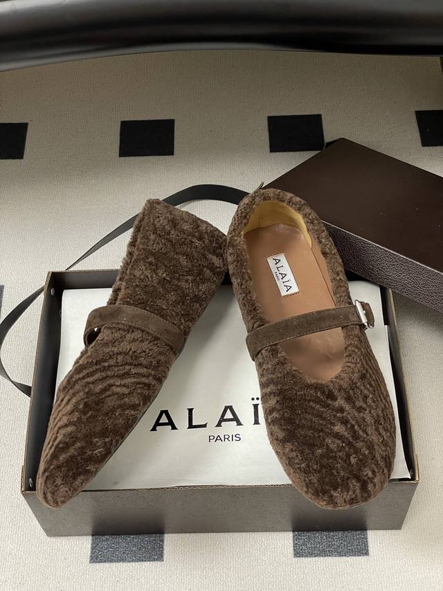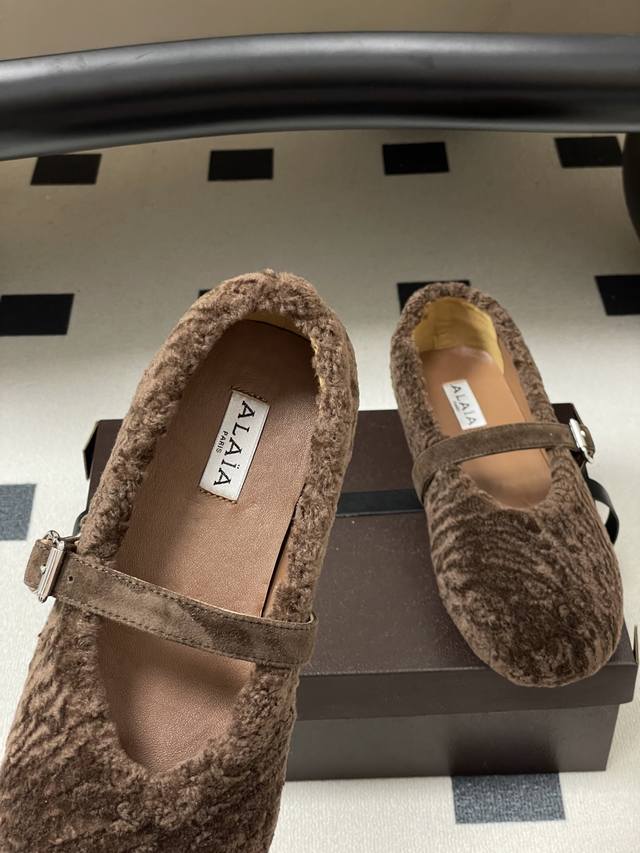 25Fw Autumn/Winter New Alaia Lambswool French Ballet Flats, Wool Mary Jane Flats, Old Money Style