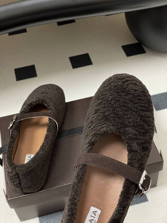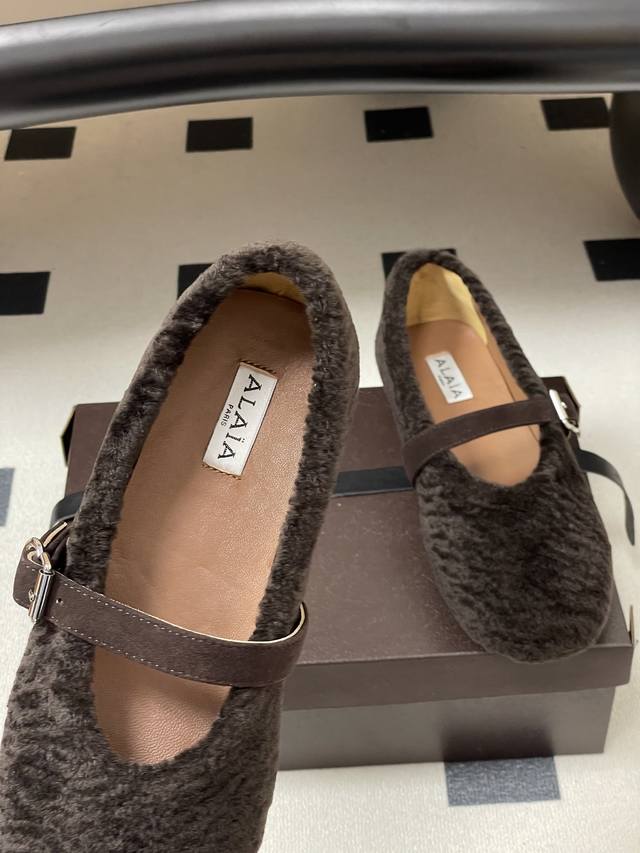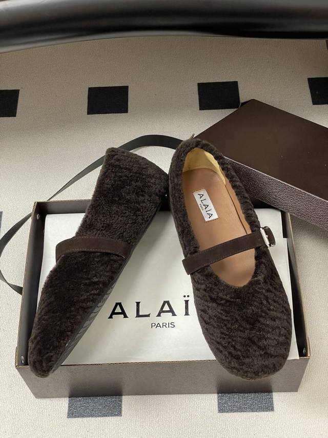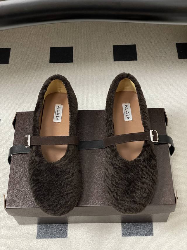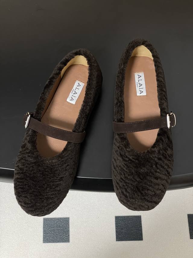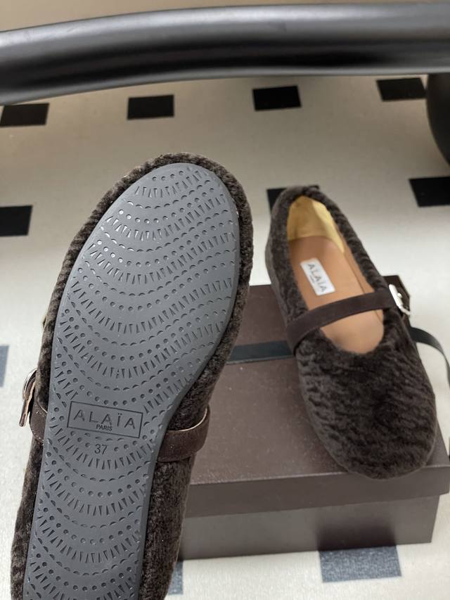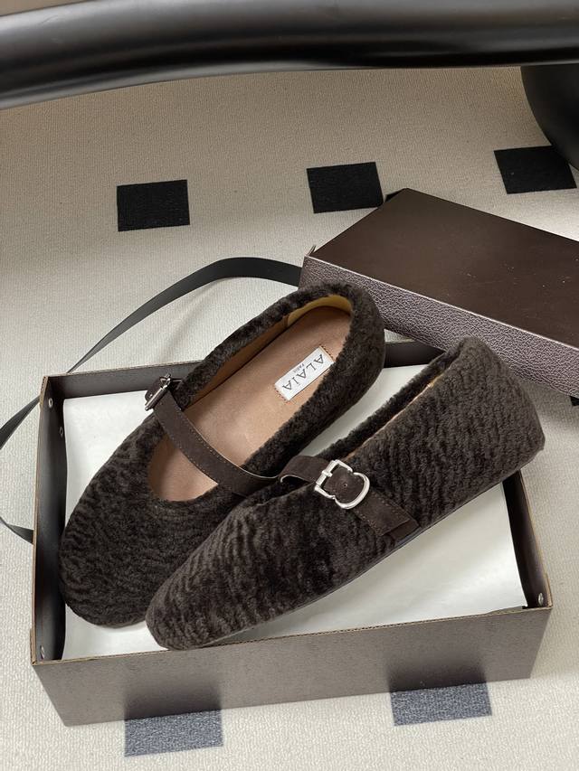 25Fw Autumn/Winter New Alaia Lambswool French Ballet Flats, Wool Mary Jane Flats, Old Money Style