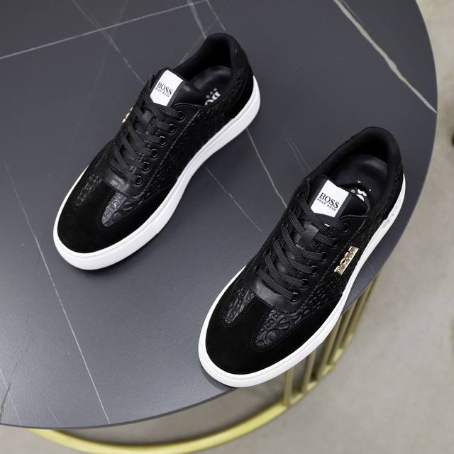 Boss 2025 Trendy New Arrival - Same Style as Official Store, Original Quality, Leather Patchwork, Comfortable and Breathable Sheepskin Lining, Exquisite Workmanship, Imported Original Materials, Original Last, Comfortable Fit, Wear-Resistant Rubber, Lightweight, Large Sole Sizes: 38-44, 45, Customization Available, Multiple Colors Available DDD
