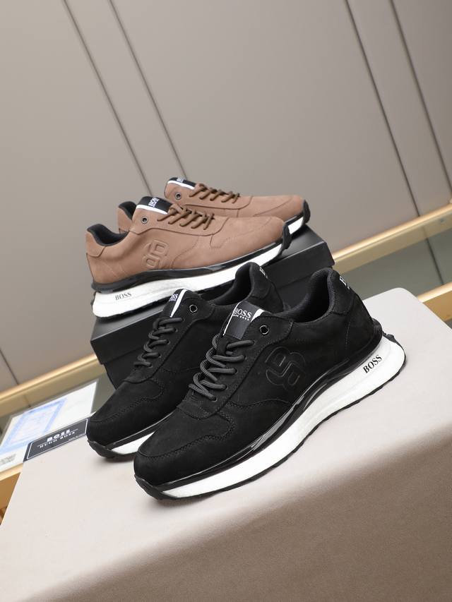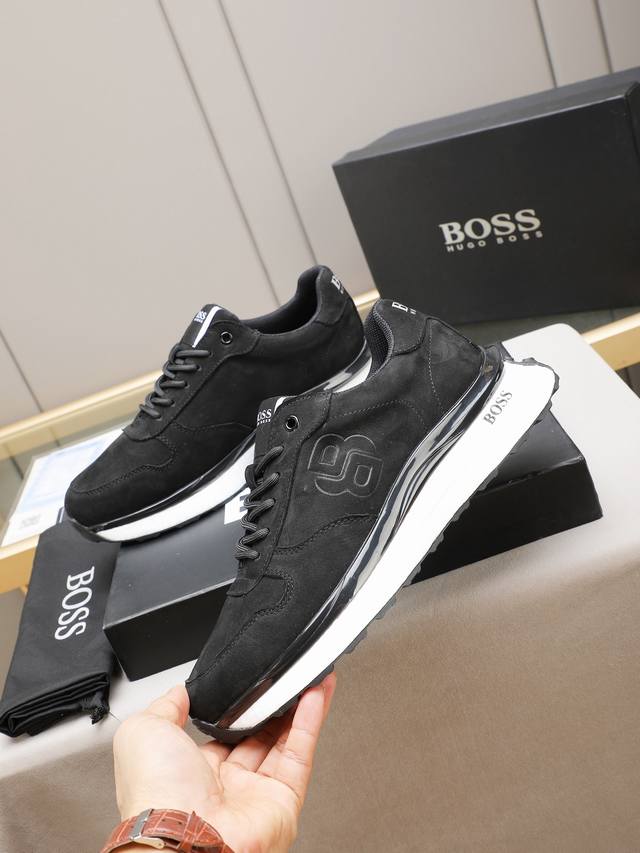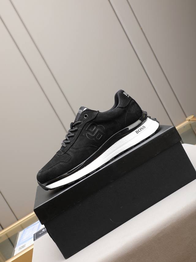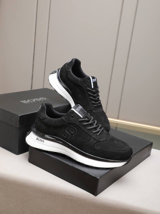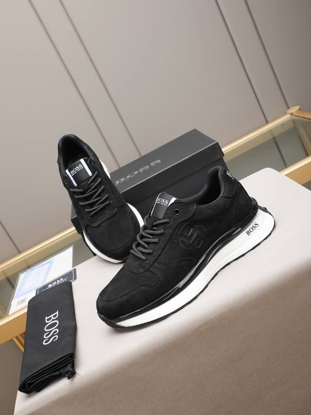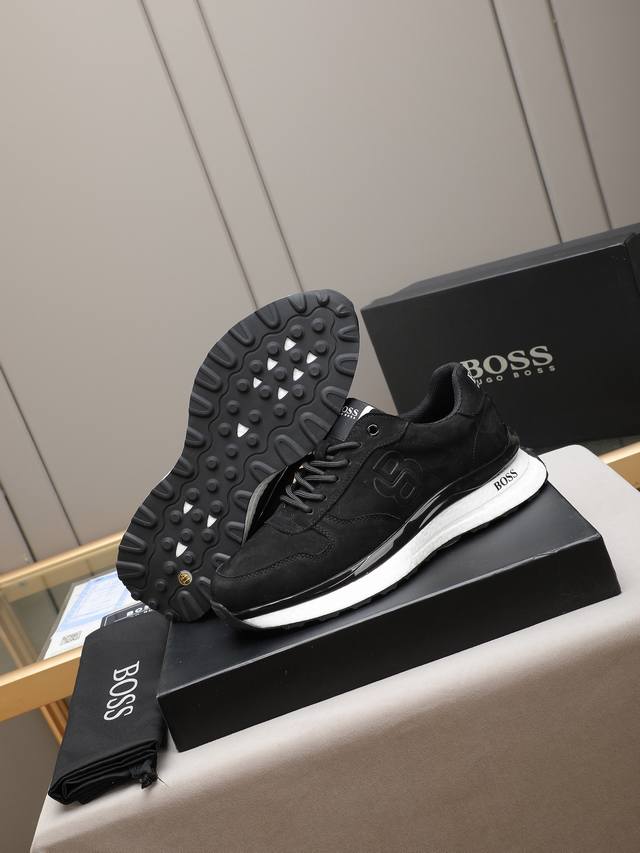 Boss, a top-tier fashion brand, presents a men's shoe that can complement various styles. The upper is constructed from a combination of materials, while the lining is made of imported mesh for breathability and comfort. The popcorn outsole design is of paramount importance