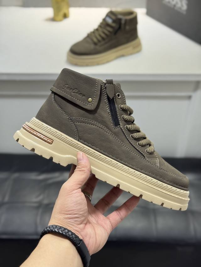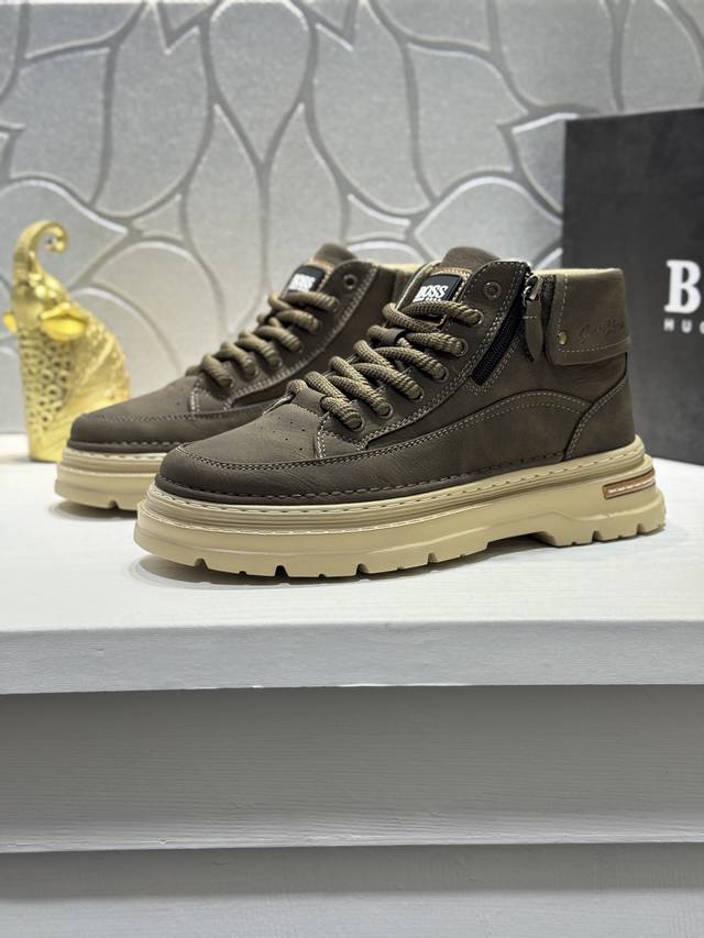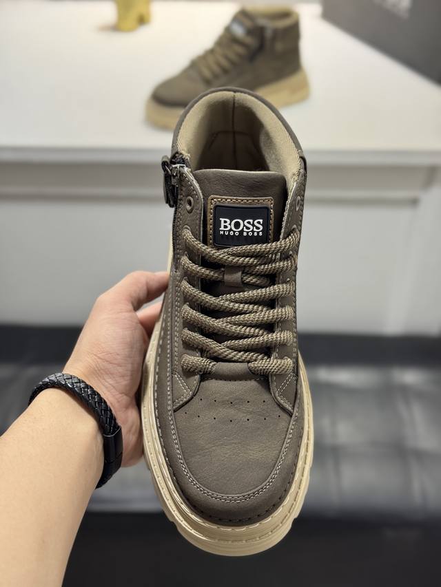Boss* Top-tier men's high-top sneakers, new style, original factory configuration, cowhide upper, mesh lining, original factory sole for super comfort, high-quality original factory direct import, 2 colors available, can be freely exchanged for genuine products. Welcome to compare. Size: 38-44, 45 (custom sizes available).