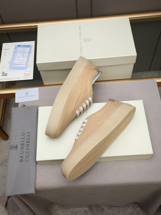 Brunello Cucinelli's latest casual collection comes from the world-renowned Italian luxury brand. The shoes feature imported waterproof fabric and a sheepskin lining! The tongue is adorned with the Bc logo, and the heel is silkscreened with the brand emblem. They are comfortable, breathable, and won't cause stuffiness, are colorfast, non-slip, and made with an environmentally friendly, harmless T-shirt and one-piece molded outsole that stays clean and doesn't come unglued. The quality is exceptional, a visible luxury. Sizes 38-44 and 45 are available for custom orders.