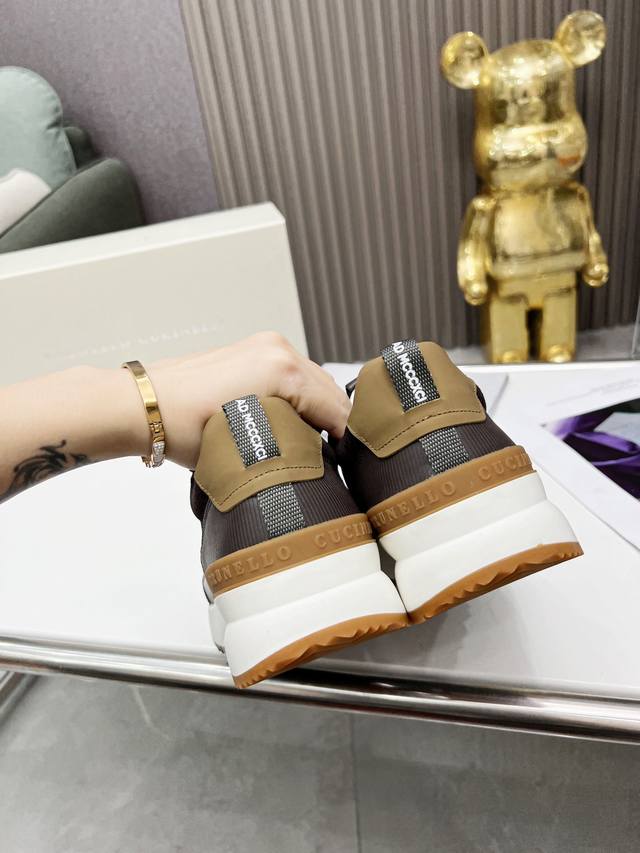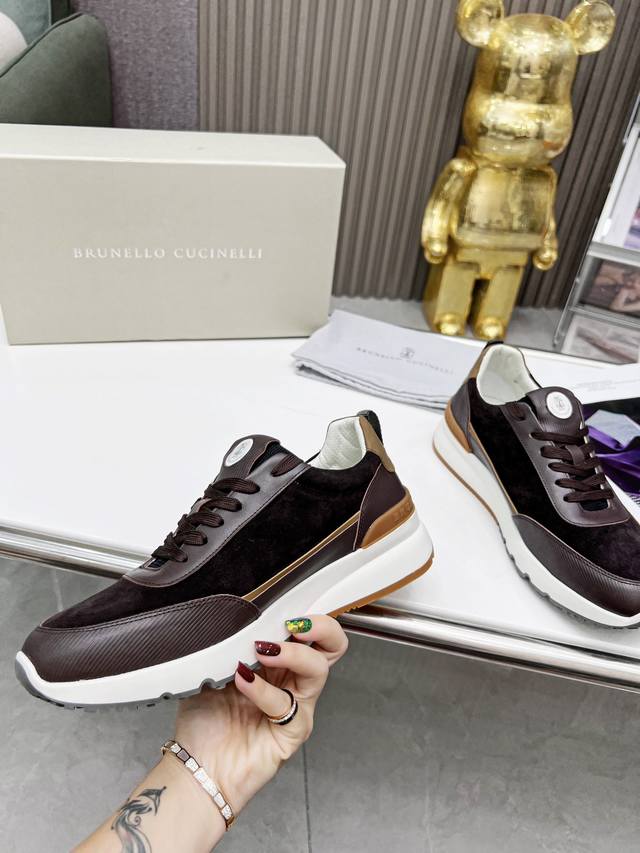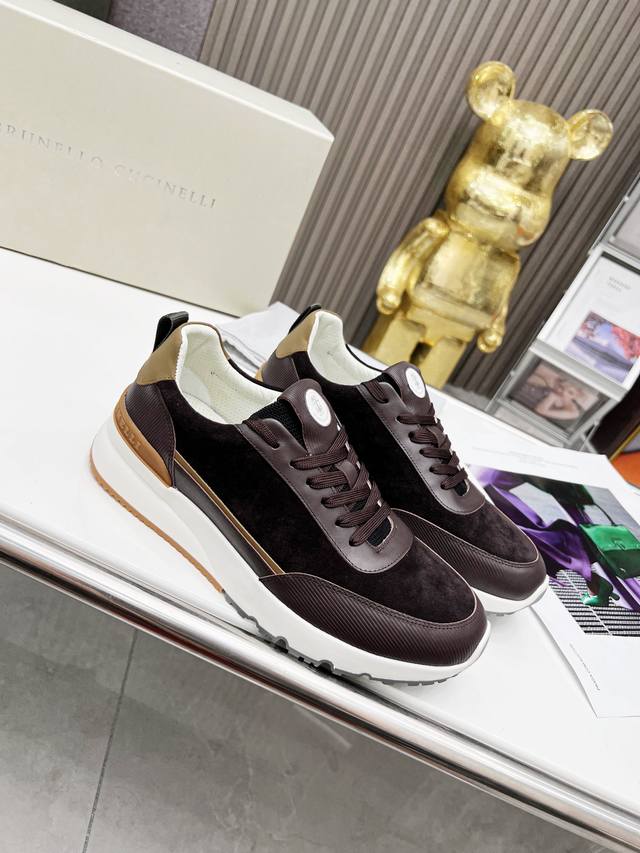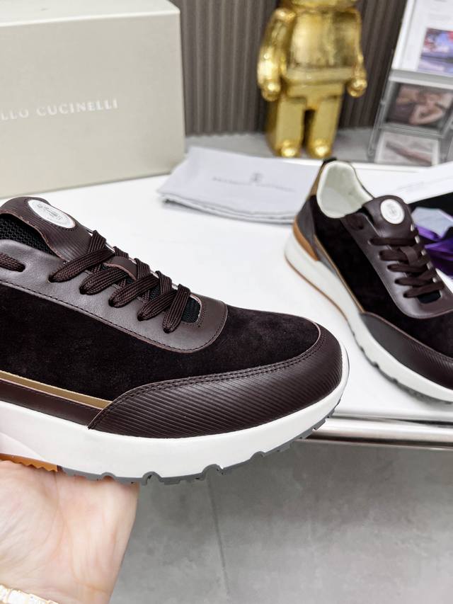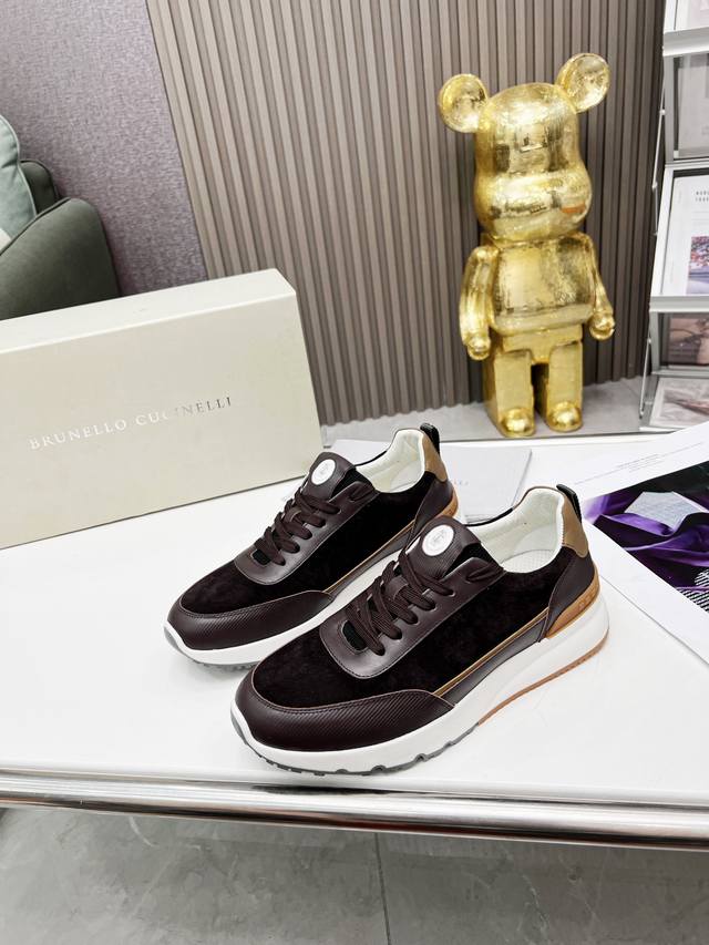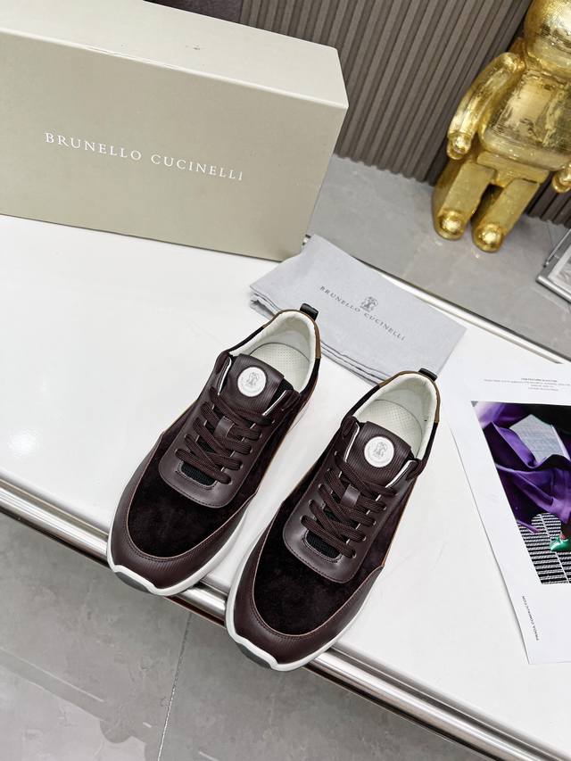 Brunellocucinelli's classic loafer inspiration defines the modern elegance of this new rubber-soled shoe. The exquisite imported calfskin features a distinctive mottled pattern, combined with an ultra-lightweight natural rubber outsole, allowing you to express your fashionable personality while maintaining comfort. The perforated, breathable cowhide lining is designed for superior comfort. This is another classic shoe you won't want to take off, a 1:1 replica of the original. Sizes 38-46 available.