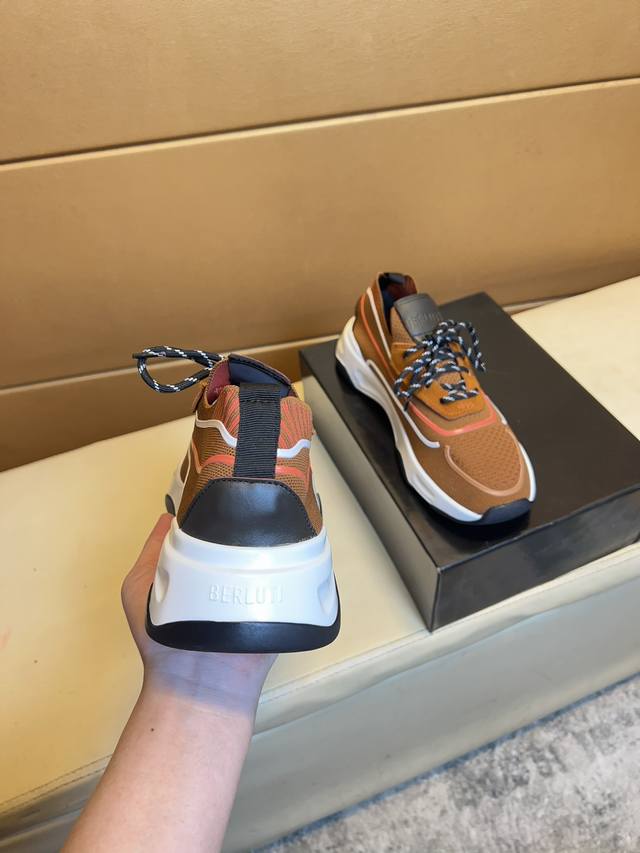 Brutti Top-Tier Men's Shoes, Available Simultaneously with Hong Kong Boutique Stores. Sole: Original factory-supplied sole, exclusive active sole for super comfort, original factory order, high-quality multi-color splicing design, exquisite and delicate workmanship, unique, breathable flyknit, cowhide lining