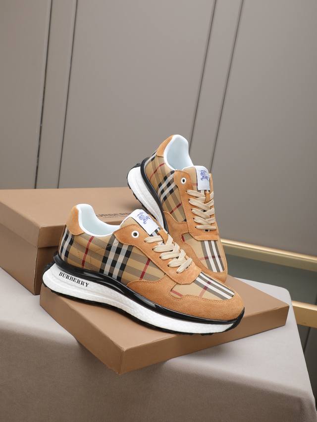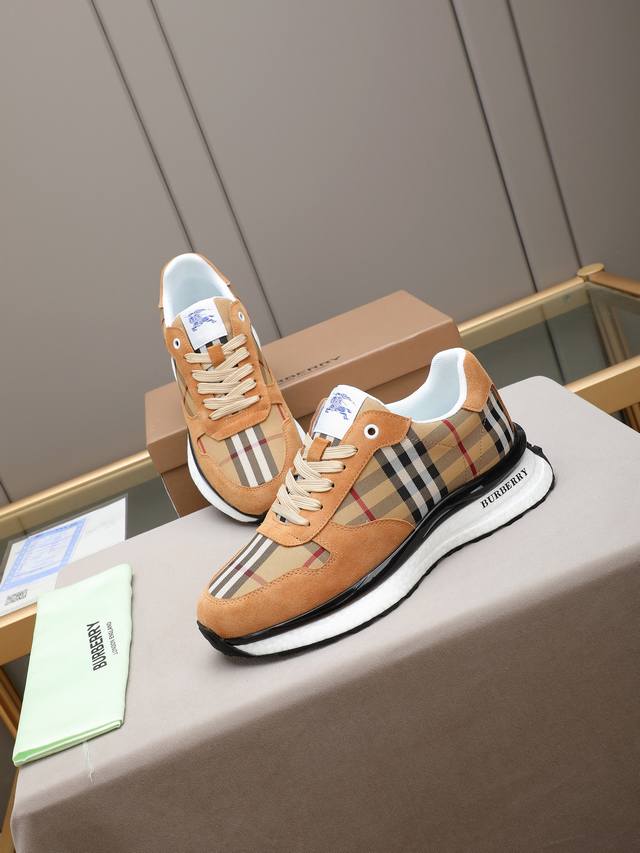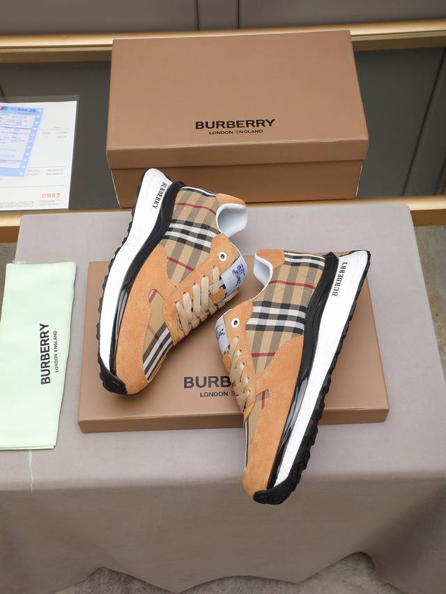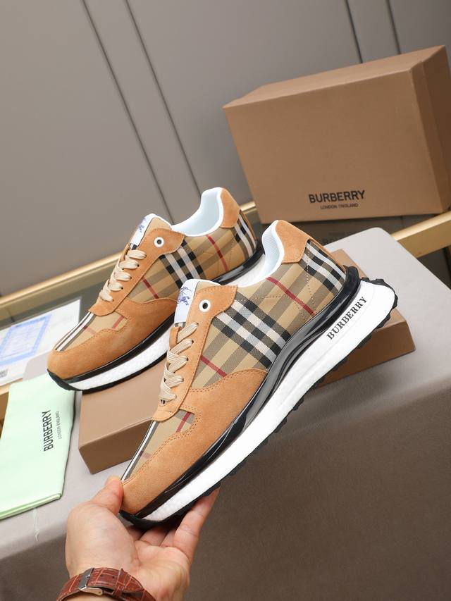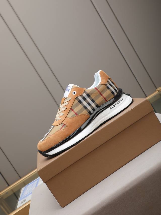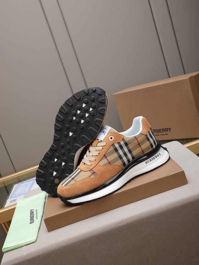 Burberry, a top-tier fashion brand, presents a men's shoe that can complement various styles. The upper is constructed from a combination of materials, while the lining is made of imported mesh for breathability and comfort. The popcorn outsole design is of paramount importance