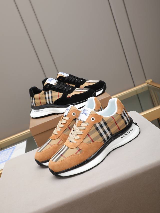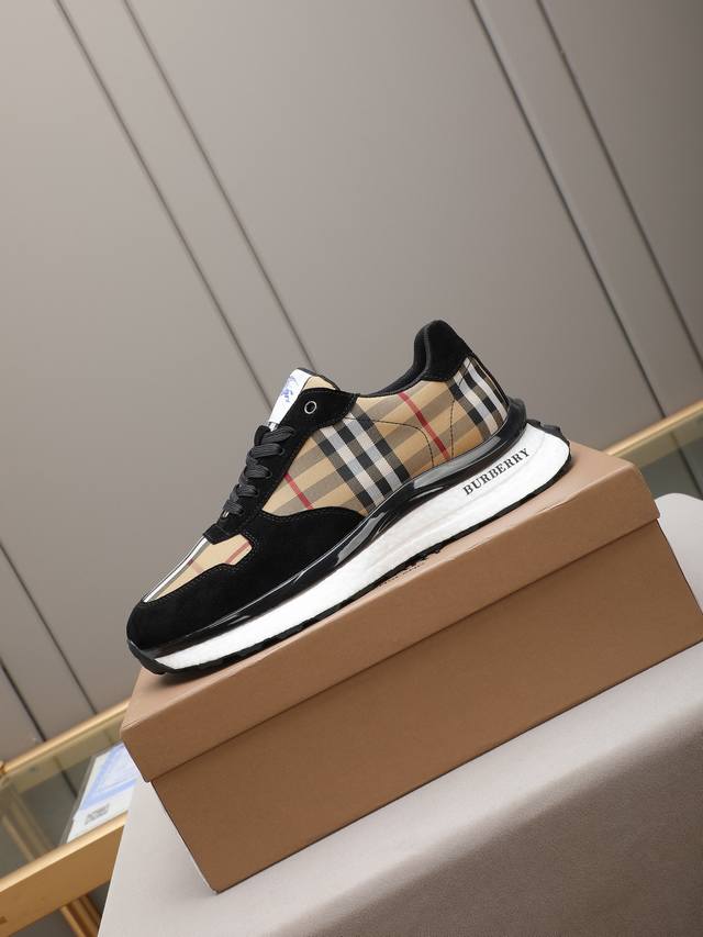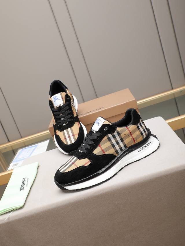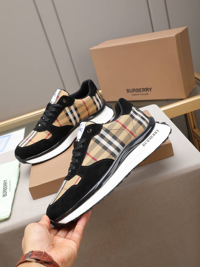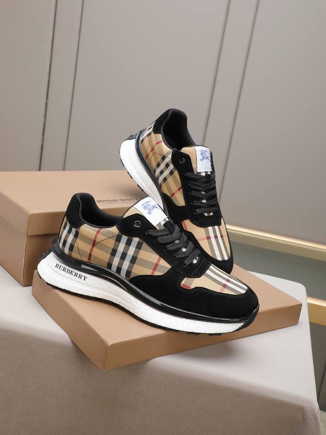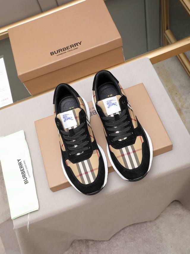 Burberry, a top-tier fashion brand, presents a men's shoe that can complement various styles. The upper is constructed from a combination of materials, while the lining is made of imported mesh for breathability and comfort. The popcorn outsole design is of paramount importance