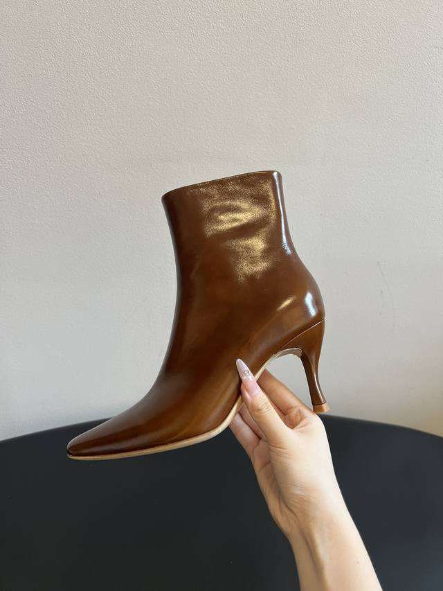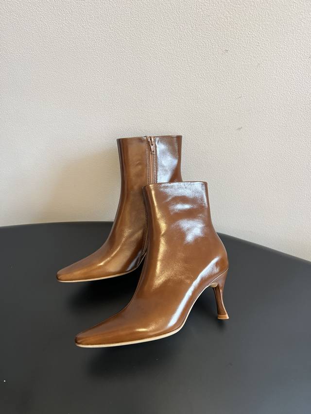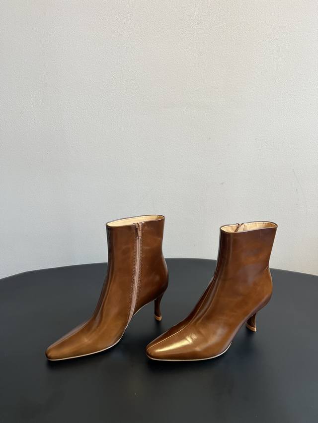 By Far 25Ss Autumn/Winter New Style: All-Leather Kitten Heel Ankle Boots. The pointed toe adds a stylish, elongated look. You can see the curvature of the boot's sides, designed to reflect the human leg shape. They look incredibly flattering on the foot. Byfar needs no further explanation; it's become a hot niche brand in the last two years. Today, I'm recommending these pointed-toe, stiletto-heeled ankle boots. Maintaining their minimalist design, they're a versatile and timeless classic. They're perfect for work, shopping, skirts, leggings, and even suits, perfect for everyday wear. Heel Height: 4.5 cm. Upper: Cowhide. Lining: Sheepskin. Outsole: Genuine Italian Leather. Sizes: #35-39, 40. Customizable. No returns or exchanges.