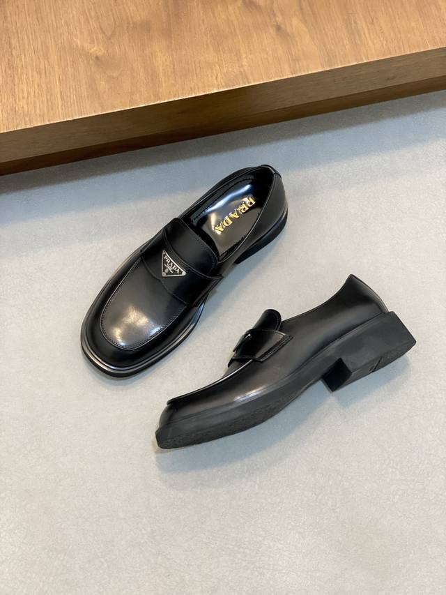 Carved prad* Derby men's shoes have arrived. Counter quality, hand-rubbed color, open-edge pearl cowhide lining, full cowhide foot padding, wear-resistant and non-slip rubber foam outsole, lightweight and comfortable to wear, domineering and versatile