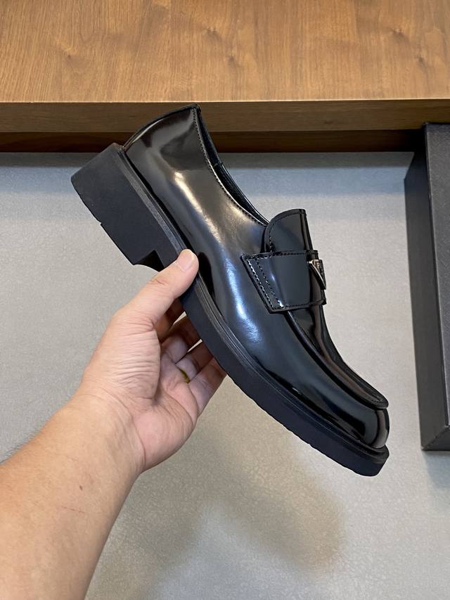 Carved prad* Derby men's shoes have arrived. Counter quality, hand-rubbed color, open-edge pearl cowhide lining, full cowhide foot padding, wear-resistant and non-slip rubber foam outsole, lightweight and comfortable to wear, domineering and versatile