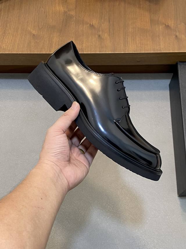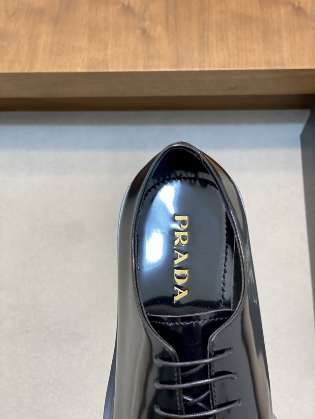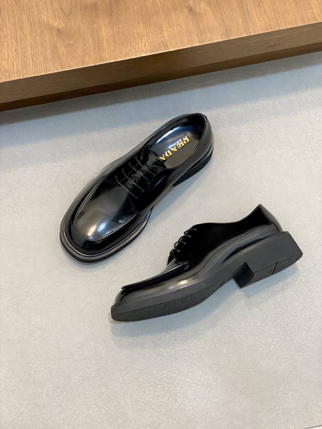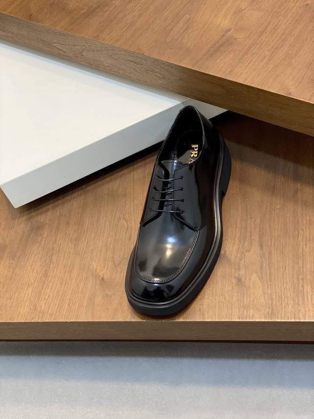 Carved prad* Derby men's shoes have arrived. Counter quality, hand-rubbed color, open-edge pearl cowhide lining, full cowhide foot padding, wear-resistant and non-slip rubber foam outsole, lightweight and comfortable to wear, domineering and versatile