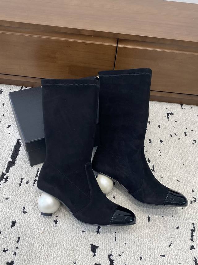Chanel 25 A Latest Official Style Pearl Heel Boots/Long Boots (