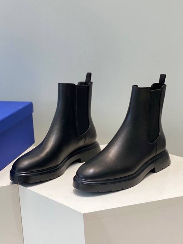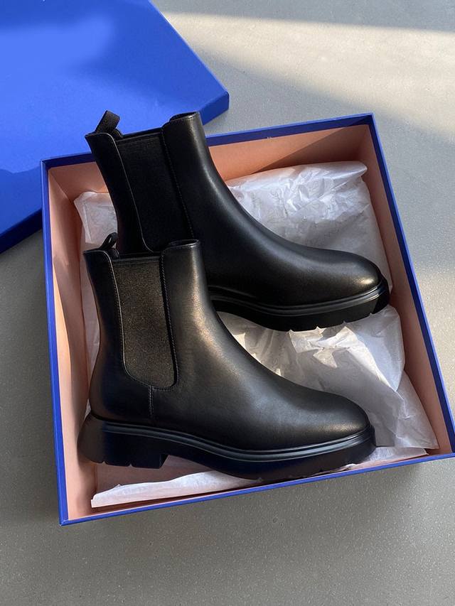 Chelsea boots, interpreting the classic Sw Chelsea boot with an elegant style. The casual silhouette paired with luxurious crystal embellishments creates a look that is both charming and effortless. The elastic side panels and comfortable flat chunky heel make these boots versatile enough to complement any style. Cowhide upper. Sheepskin lining. Rubber outsole. 3.5cm heel height. Sizes: 35-39, size 40 made to order.