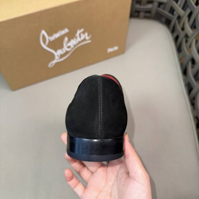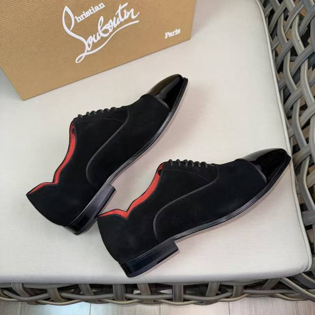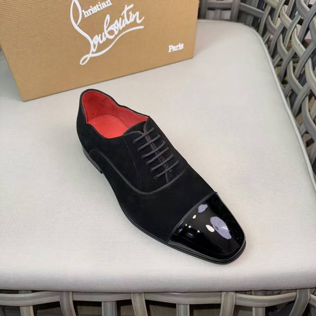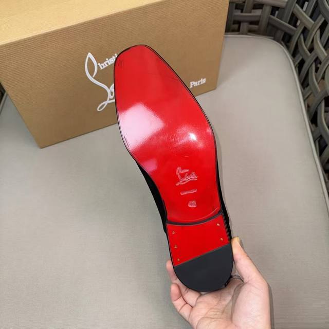 Christia*.Loubouti* High-end men's business formal leather shoes. Classic red sole, original imported top-grain cowhide. Signature rivet decoration. Water-dyed cowhide lining, Italian imported red cowhide outsole. High-end luxury. Perfectly interprets fashion, sunshine, and style, suitable for all occasions. Sizes: 39-44. 38, 45, 46 are made to order. Wholesale: .