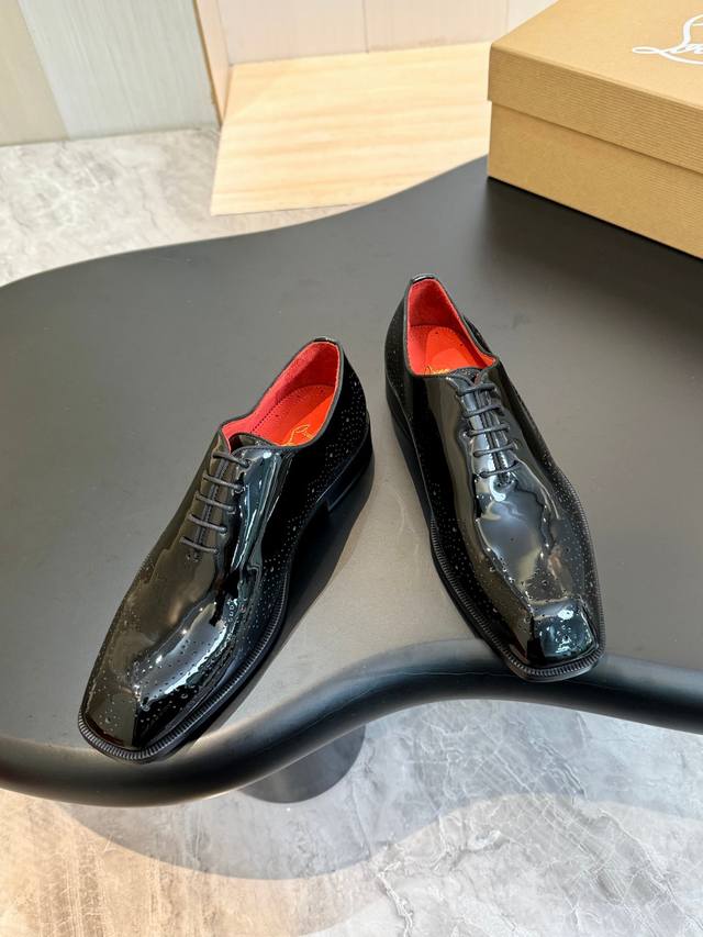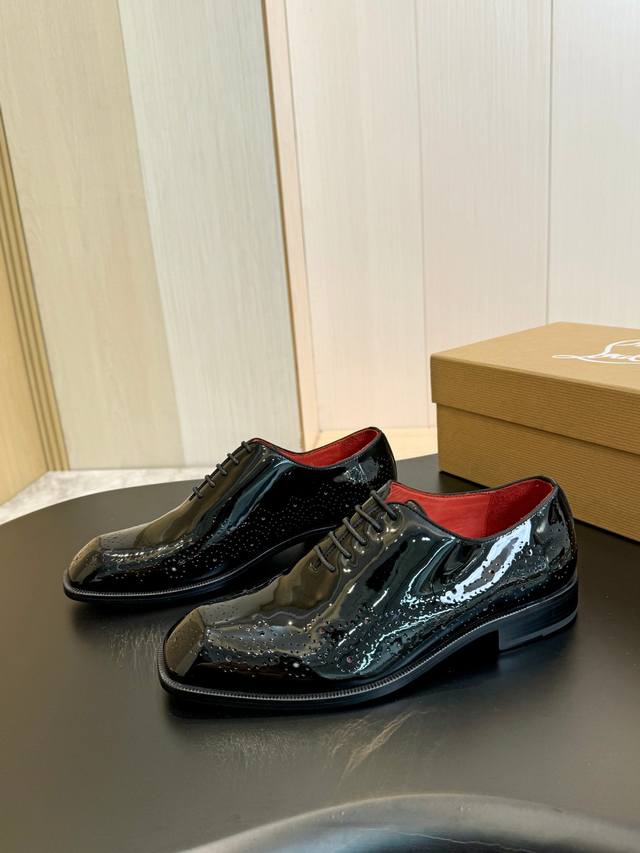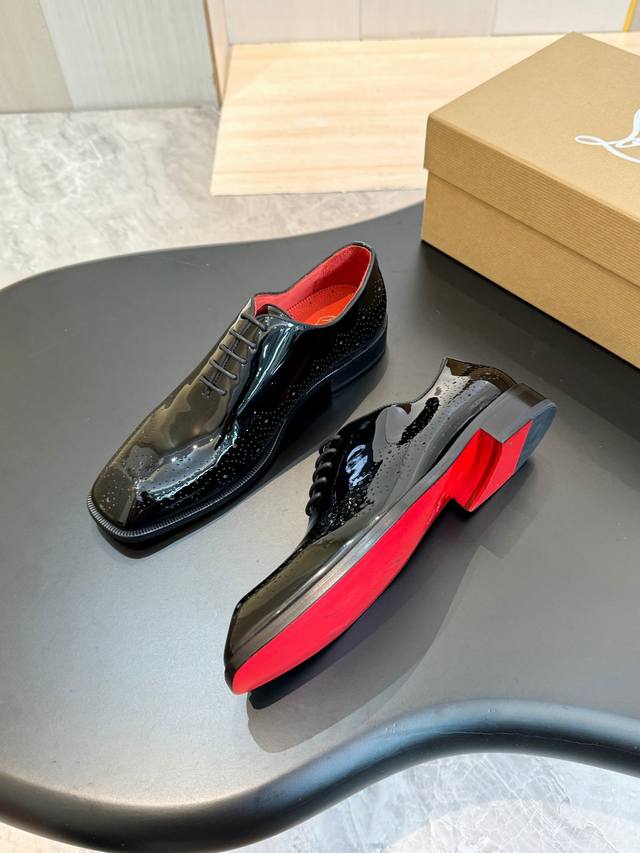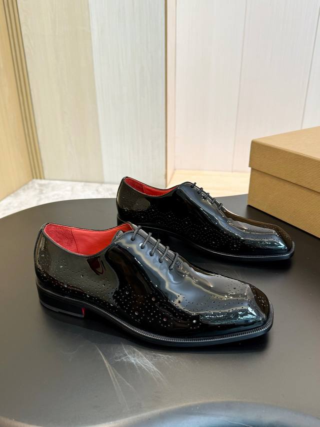 Christia*.Loubouti* High-end men's business formal leather shoes, original genuine cowhide with a bright red sole, Italian imported cowhide outsole, top-grain cowhide, water-dyed cowhide lining, high-end luxury. Sizes: 39-44, 38, 45, 46 (custom made).