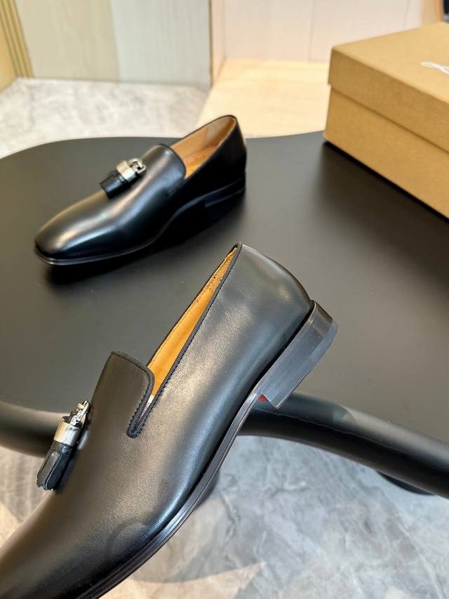 Christia*.Loubouti* High-end men's business formal leather shoes, original genuine cowhide with a bright red sole, Italian imported cowhide outsole, top-grain cowhide, water-dyed cowhide lining, high-end luxury. Sizes: 39-44, 38, 45, 46 (custom made).