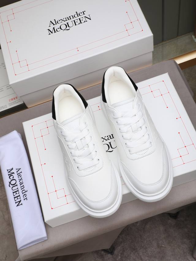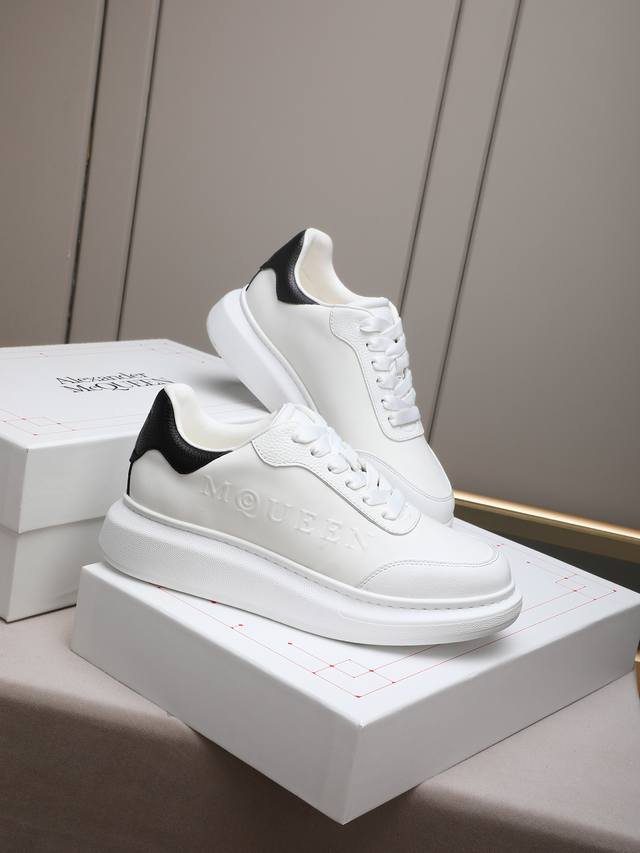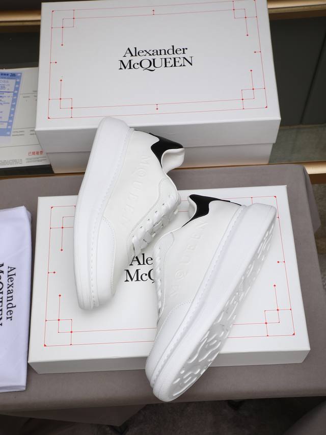 Couple's McQueen High-Quality Version. Fabric: High-quality Italian imported silk cowhide. Lining: I1A grade Italian imported water-dyed cowhide, specially ordered for its strong toughness, stain resistance, sweat absorption, and breathability. Stamping: Top-grade sole. Sole: PU + 1:1 replica rubber outsole. Package: Original beige shoe box, cloth bag. Size: Women's 35-39, 40 (custom orders available); Men's 38-44, 45 (custom orders available).