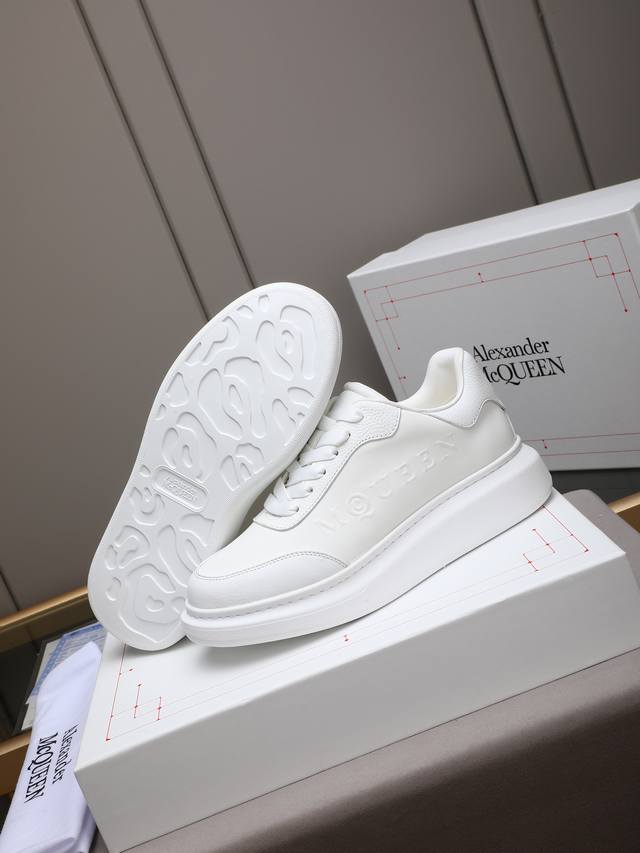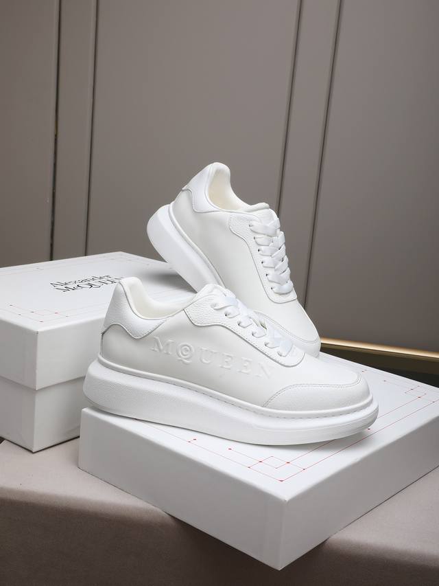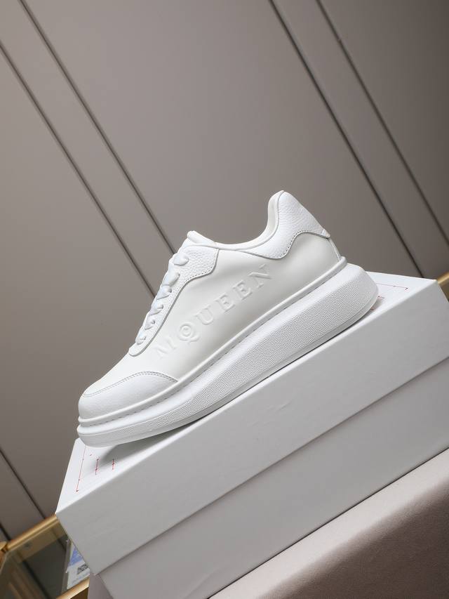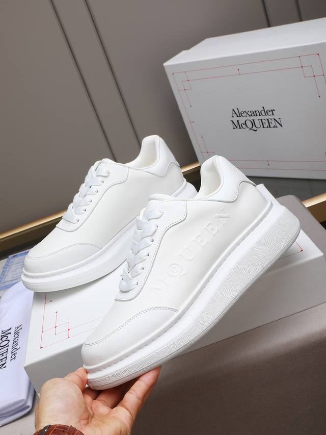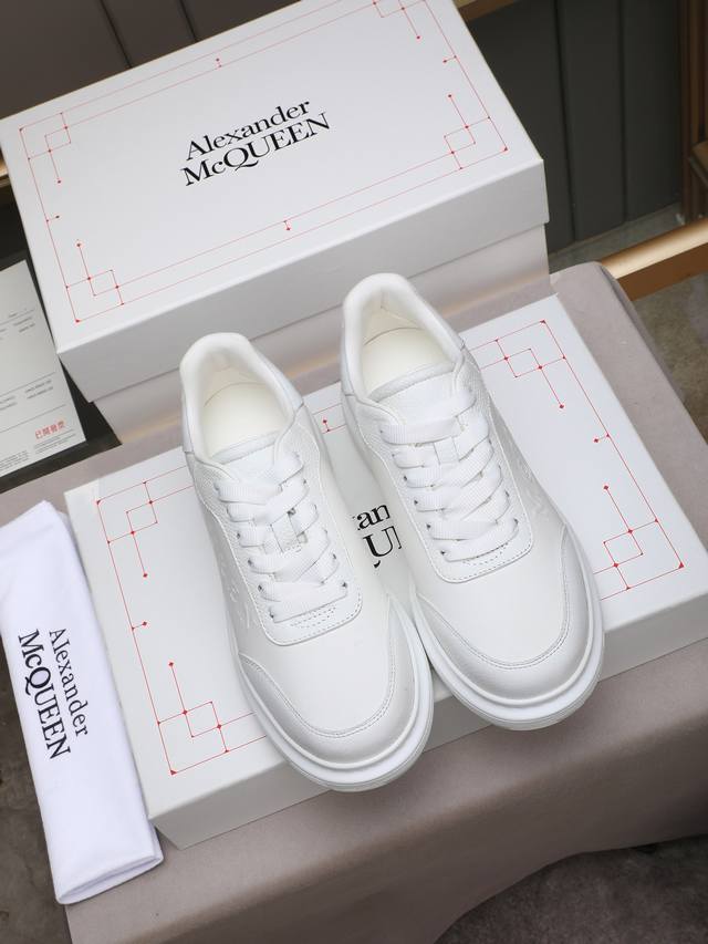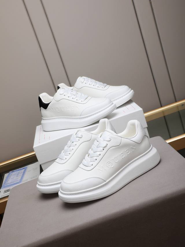 Couple's McQueen High-Quality Version. Fabric: High-quality Italian imported silk cowhide. Lining: I1A grade Italian imported water-dyed cowhide, specially ordered for its strong toughness, stain resistance, sweat absorption, and breathability. Stamping: Top-grade sole. Sole: PU + 1:1 replica rubber outsole. Package: Original beige shoe box, cloth bag. Size: Women's 35-39, 40 (custom made); Men's 38-44, 45 (custom made).