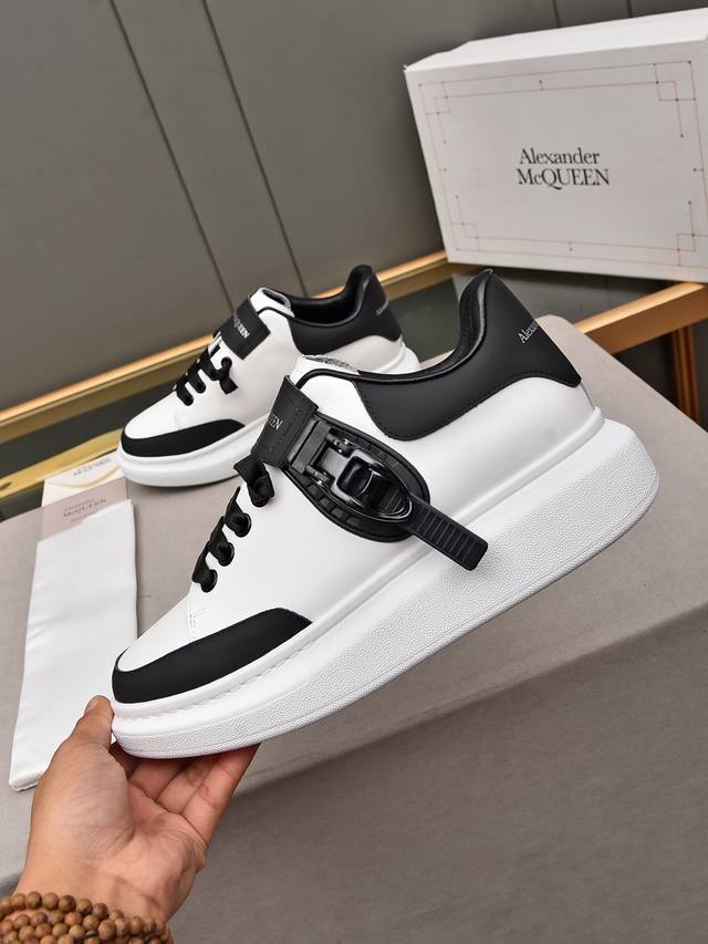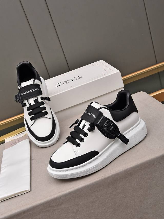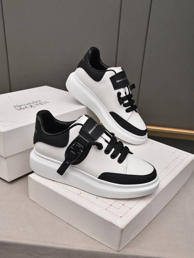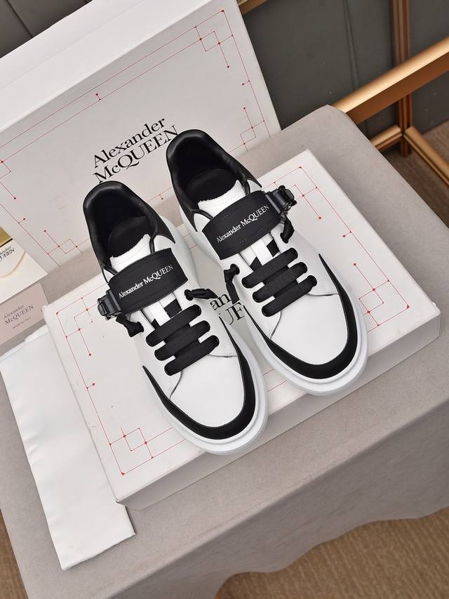 Couple's McQueen High-Quality Version. Fabric: High-quality Italian imported silk cowhide. Lining: I1A grade Italian imported water-dyed cowhide, specially ordered for its strong toughness, stain resistance, sweat absorption, and breathability. Stamping: Top-grade sole. Sole: PU + 1:1 replica rubber outsole. Package: Original beige shoe box, cloth bag. Size: Women's 35-39, 40 (custom orders available); Men's 38-44, 45 (custom orders available).