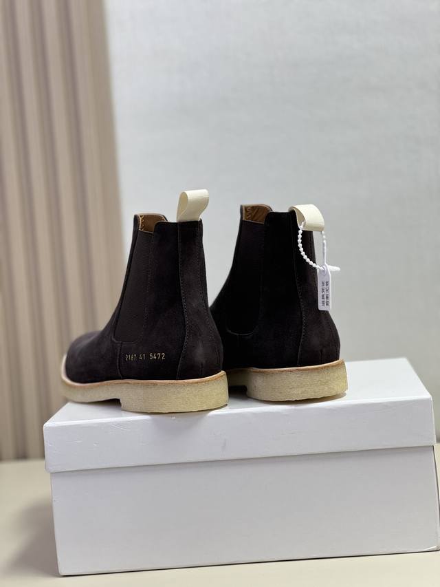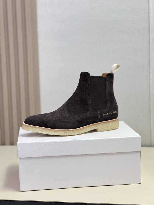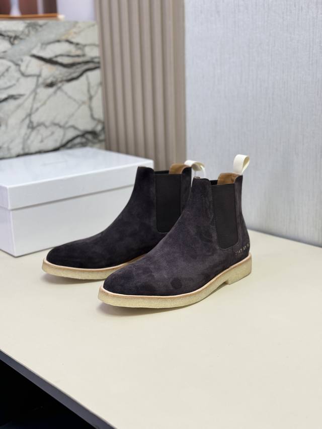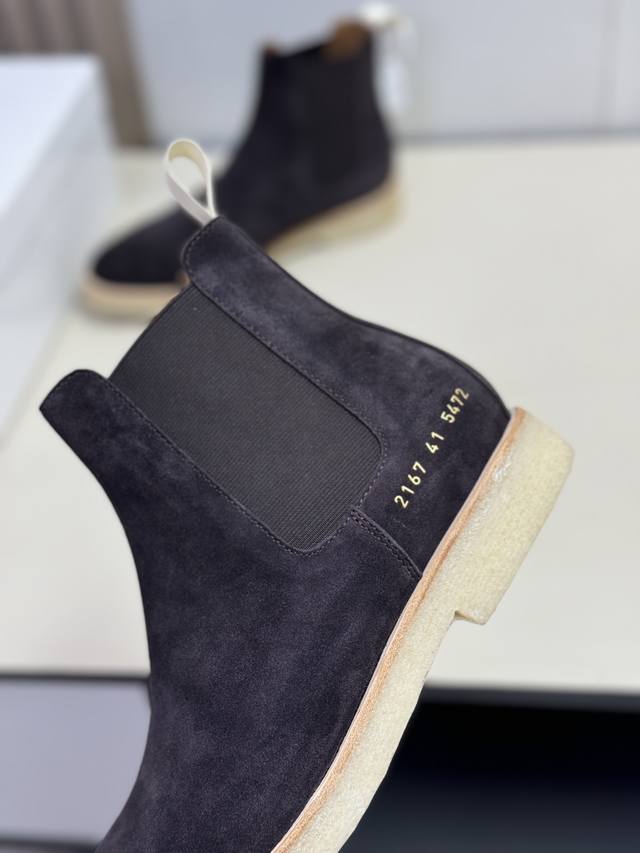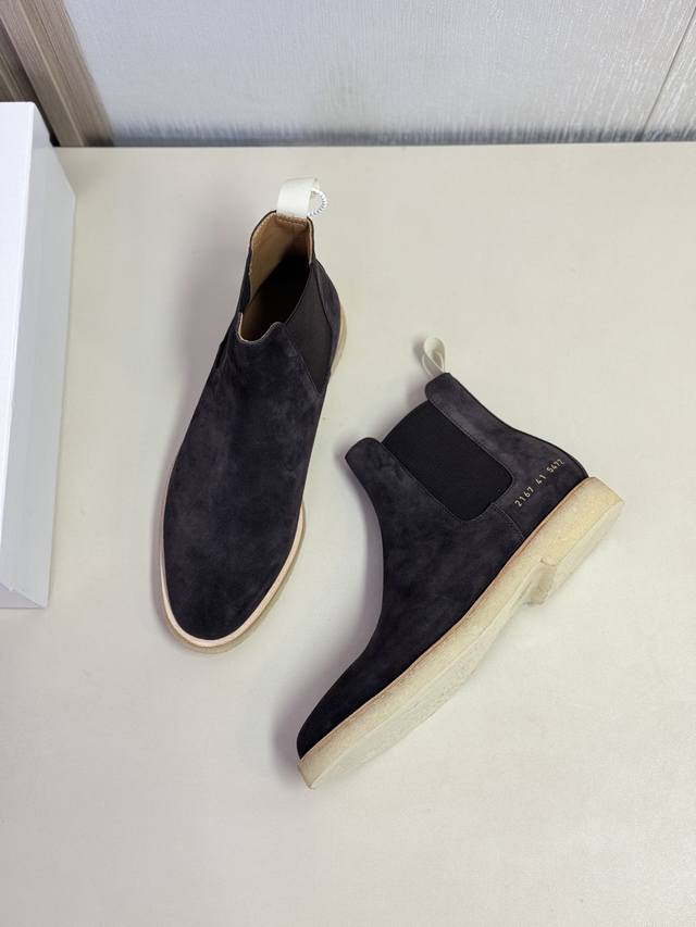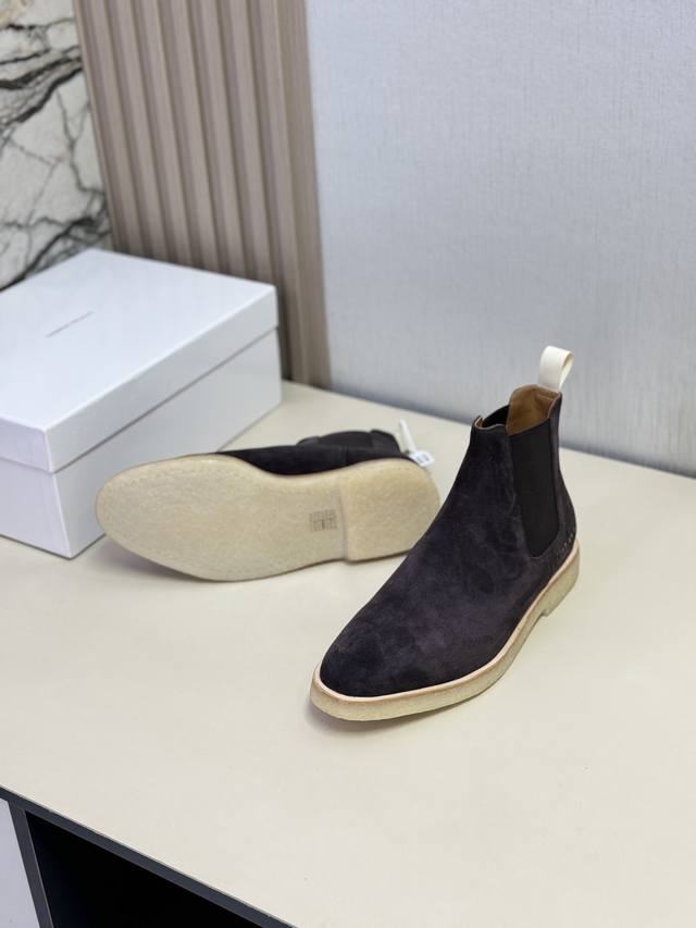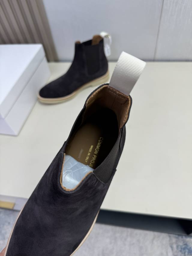 Cp Chelsea Boots Top Grade Size: 38-44 38 .45 .46 Orders are non-refundable and non-exchangeable. Note: Due to the easily soiled rubber sole, please do not remove the protective film after trying them on. Items affecting resale cannot be returned or exchanged! Ddd Common projects Chelsea Boots; Tobacco-colored suede, Authentic Men's Number: 1897-0115, Exclusively developed, Top-tier quality, highest version on the market, Original Goodyear welt construction with connected sole, Full set of authentic packaging, shoe box, cloth bag, shoe wrapping paper; Outsole: Original custom-made imported cow suede; Lining: Original custom-made imported water-dyed top-grain cow lining + insole; Sole: Tobacco rubber outsole + double-layer shaped midsole + waist iron. Ddd Note: Due to the easily soiled rubber sole, items affecting resale cannot be returned or exchanged! DDD