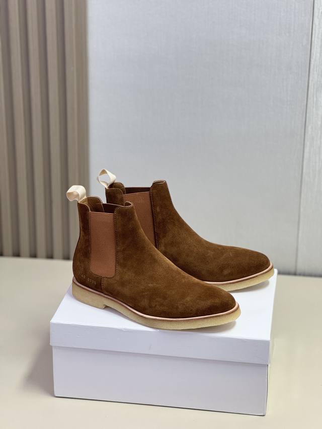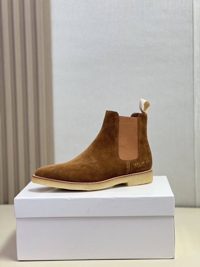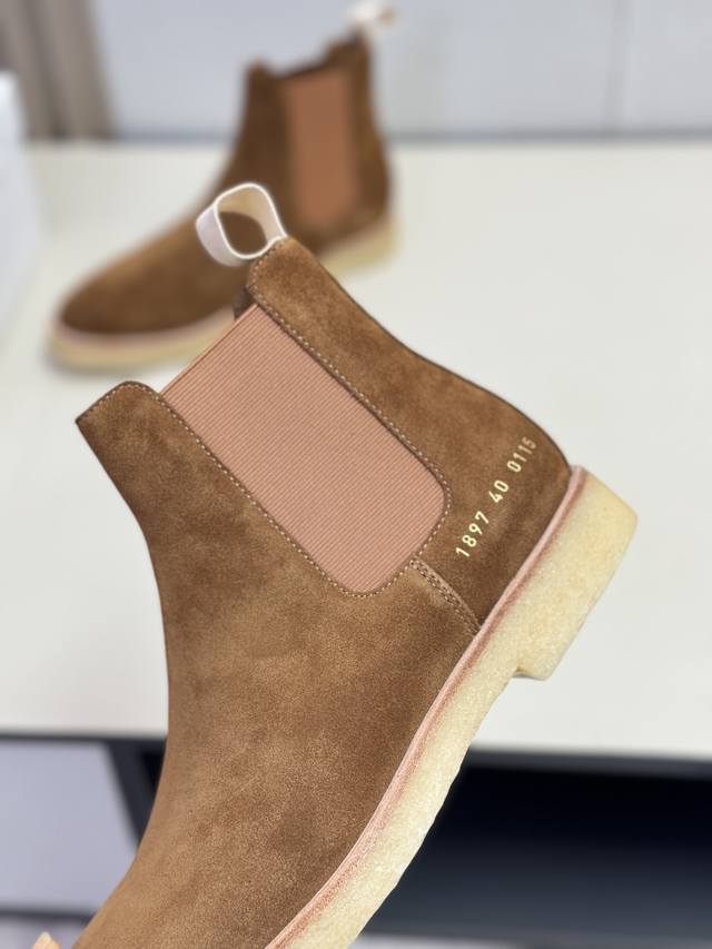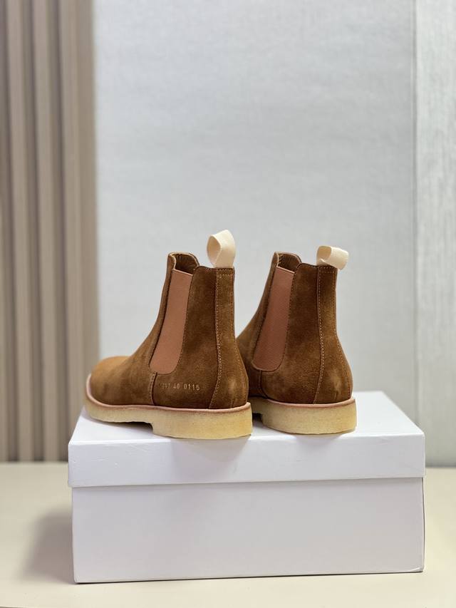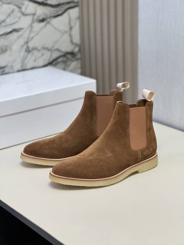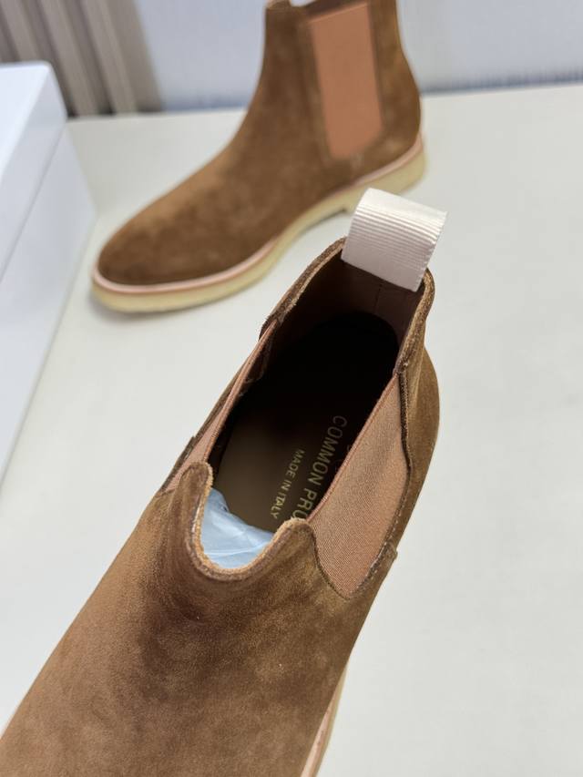 Cp Chelsea Boots Top Size: 38-44 38.45.46 Orders are non-refundable and non-exchangeable. Note: Due to the easily soiled rubber sole, please do not remove the protective film after trying them on. Items affecting resale cannot be returned or exchanged! Ddd Common projects Chelsea Boots; Tobacco-colored suede, Authentic Men's Number: 1897-0115, Exclusively developed, top-tier quality, highest version on the market, original Goodyear welt construction with connected sole, complete authentic packaging, shoe box, cloth bag, and shoe wrapping paper; Upper: Original custom-made imported cow suede; Lining: Original custom-made imported water-dyed top-grain cow lining + insole; Sole: Tobacco rubber outsole + double-layer molded midsole + waist support. Ddd Note: Due to the easily soiled rubber sole, items affecting resale cannot be returned or exchanged!! DDD
