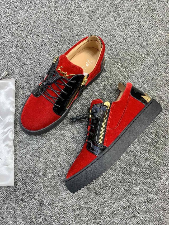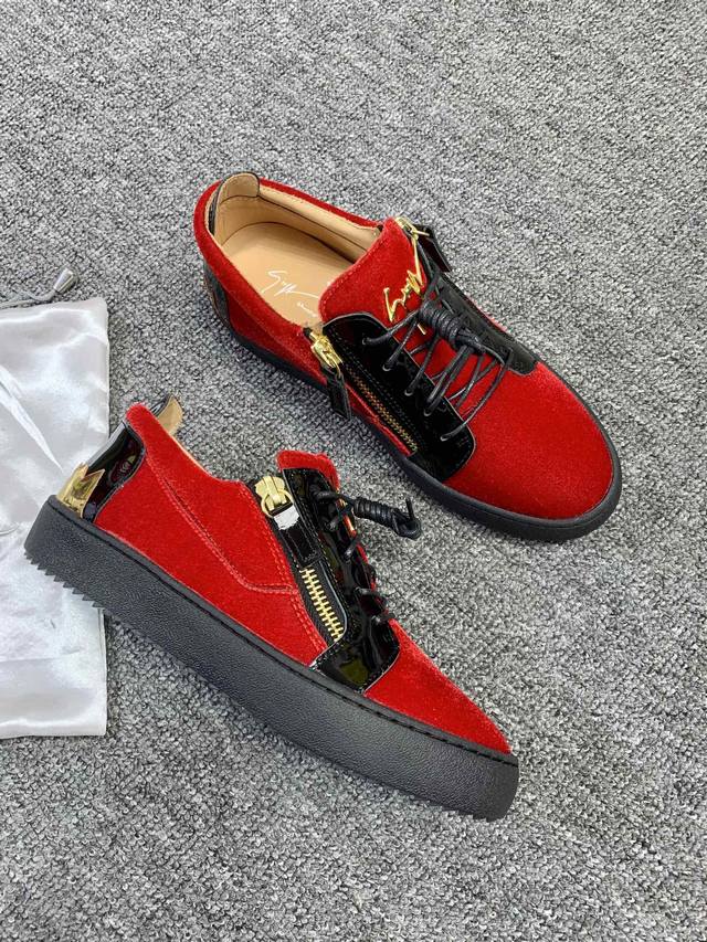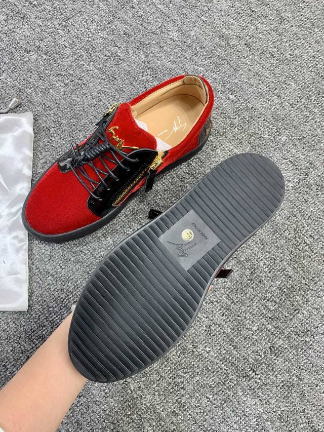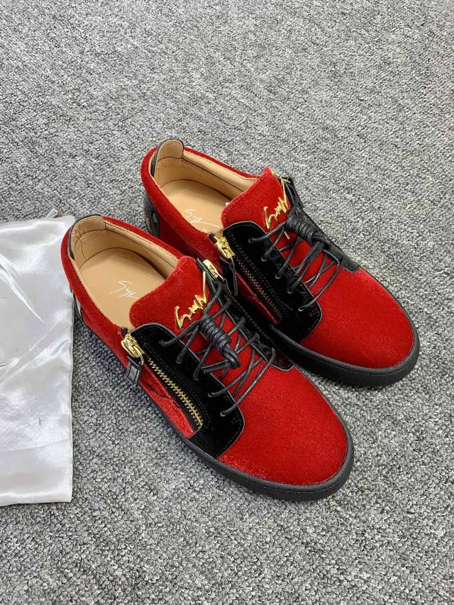 Custom-made item at a fixed price, low-top red velvet! Latest and highest quality version! Newly molded and customized! All-leather, Giuseppe Zanotti high-end couple's style, original high-grade metal buckle, top-grain calfskin lining, custom-molded original sole, absolutely high-end. Women's sizes 35-40, men's sizes 38-46. High-end customization, two-day delivery. Many other styles are available; those who prioritize price over quality, please do not apply. DDD