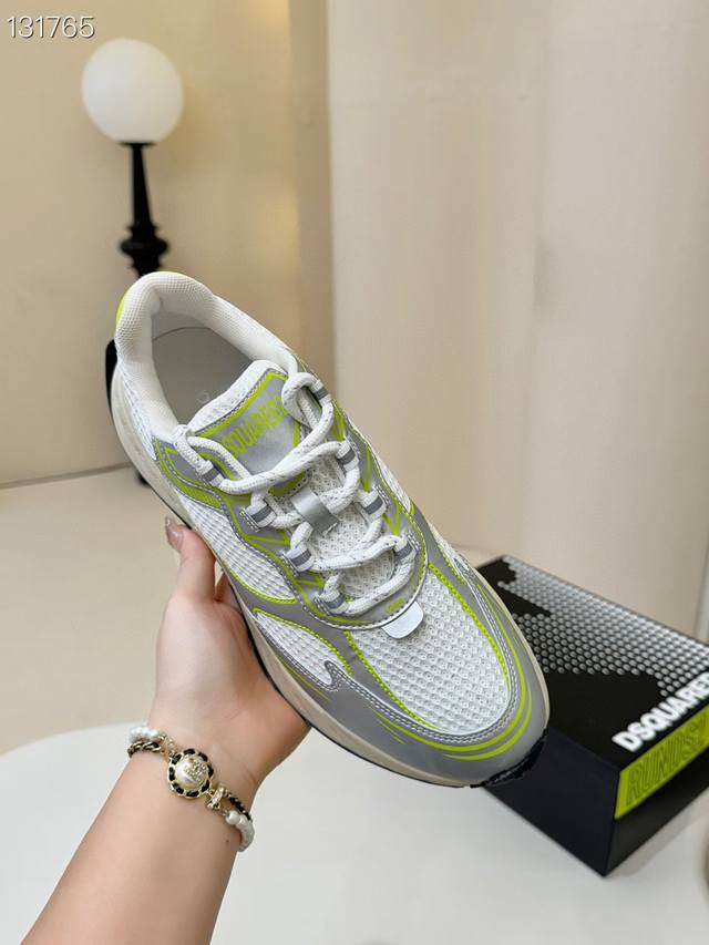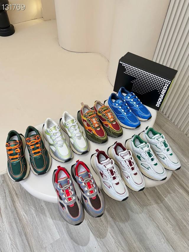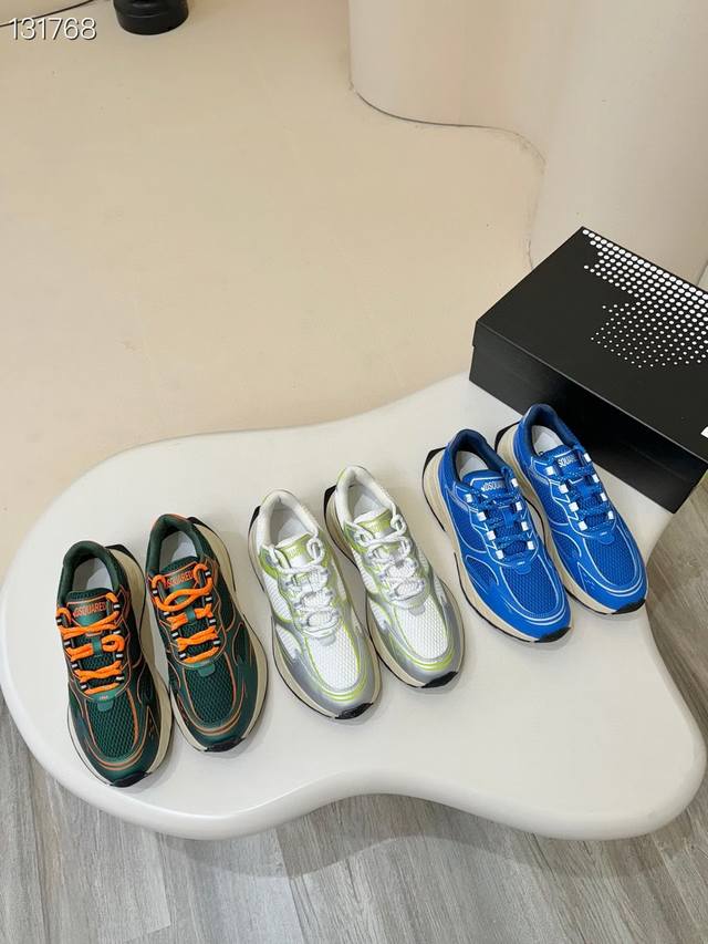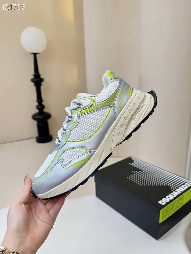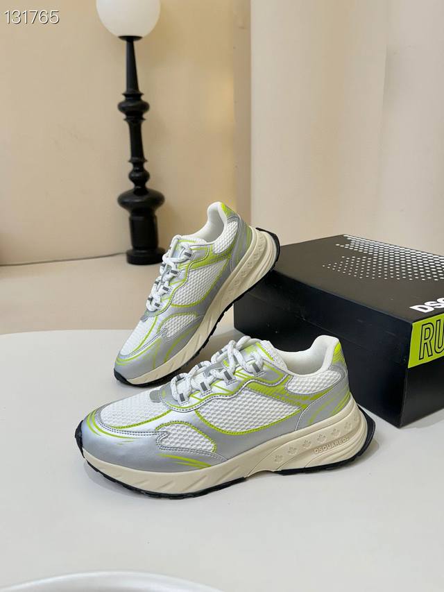 Dsquared2 Size: 39-44. Size 45 can be customized. DDD 2025Ss Dsquared2 Sprinter Sneakers. DDD Original factory configuration, made in Italy. Design highlights: lace-up upper, calfskin leather with breathable mesh, handcrafted, towel lining, and original factory sole for super comfort. DDD