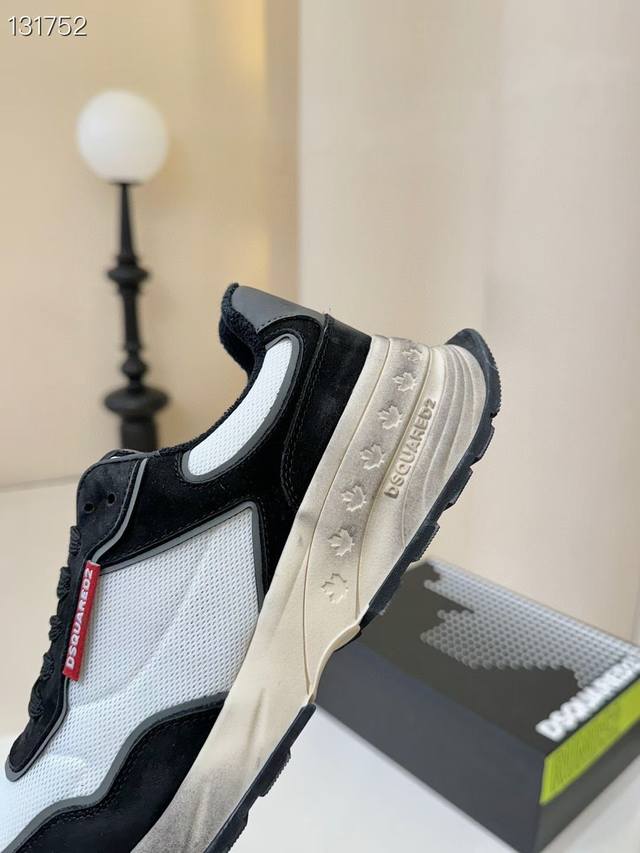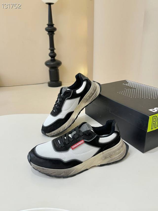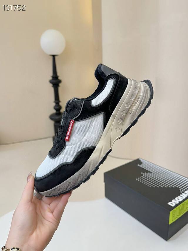 Dsquared2 Size: 39-44. Size 45 can be customized. DDD 2025Ss Dsquared2 Sprinter Sneakers. DDD Original factory configuration, made in Italy. Design highlights: lace-up upper, calfskin, suede, woven fabric, towel lining, sole: original factory sole for super comfort. DDD