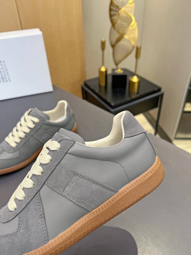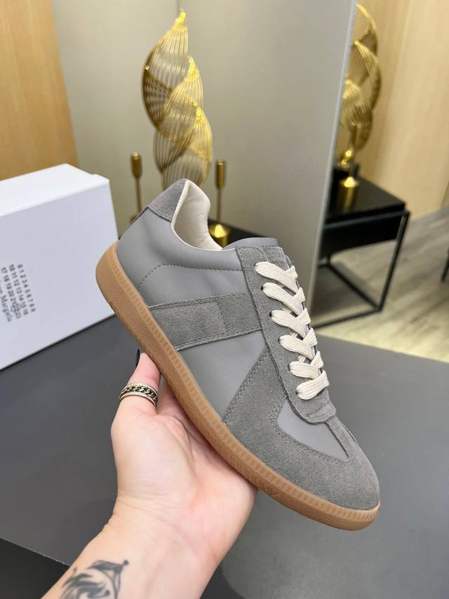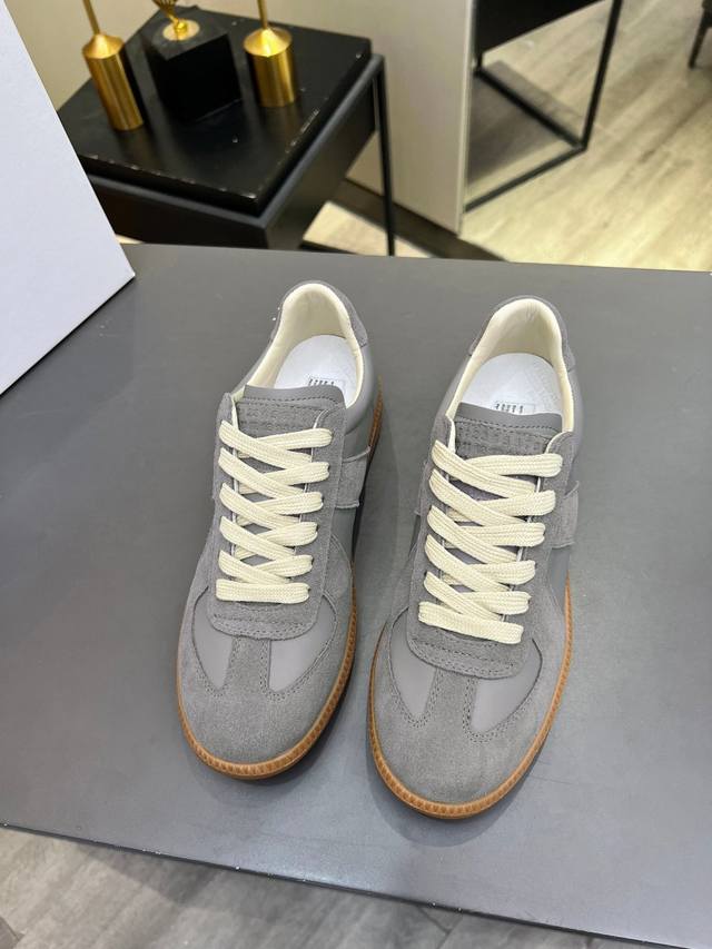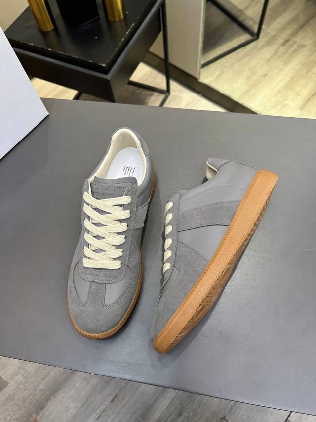 Just hearing the retro style immediately brings to mind the classic M*Arginal. Retro and fashionable, clean and refreshing color schemes for spring, summer, autumn and winter, comfortable, cool and casual style design, very Margiela style, pressure-free to wear, full of pioneering elements, original packaging, a light luxury trendy style, combining multiple elements designed by Margiela designers. This German training shoe continues the classic T-shaped genuine leather splicing, after multiple careful improvements by the design team, just to let you experience the most original military flavor