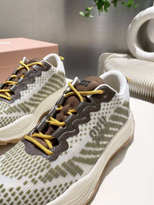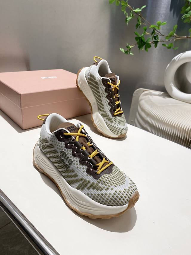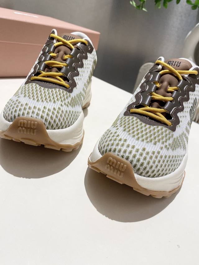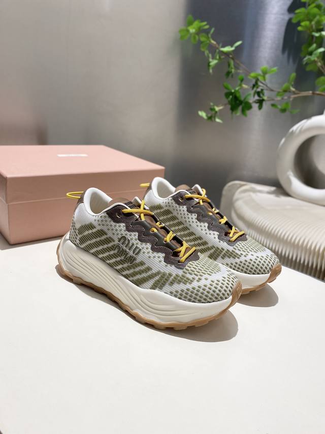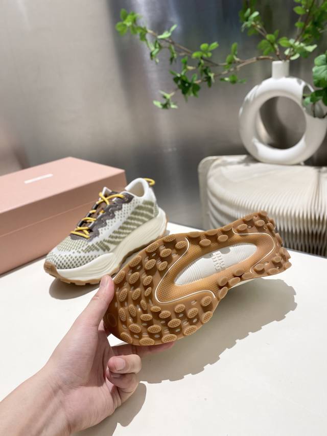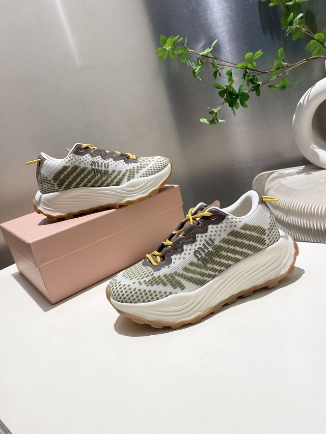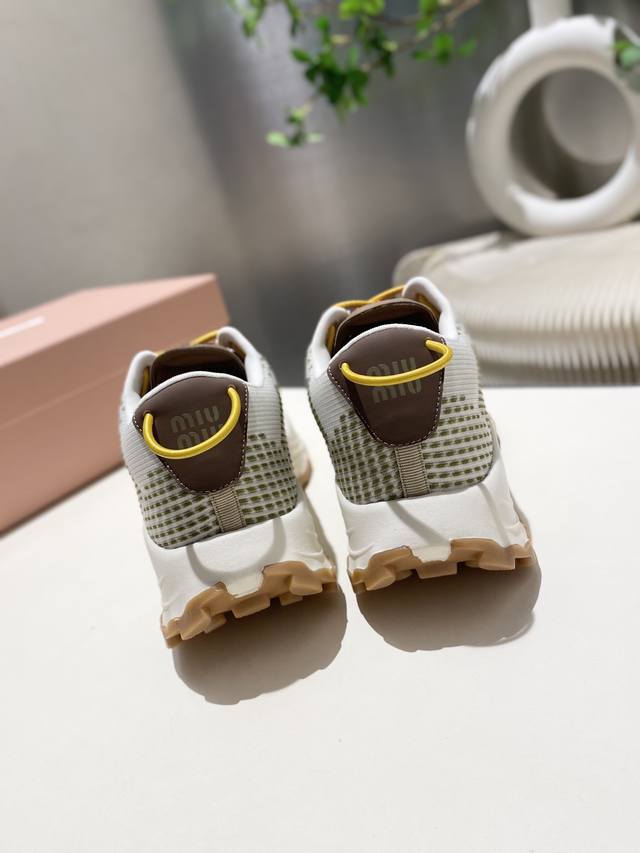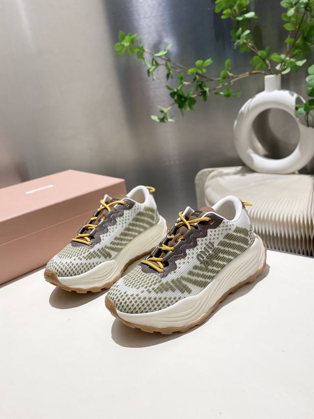Factory direct from Miu Miu 2025 runway new hot item. Mesh platform German training shoes, casual sports shoes. These lace-up sneakers have a classic American casual style