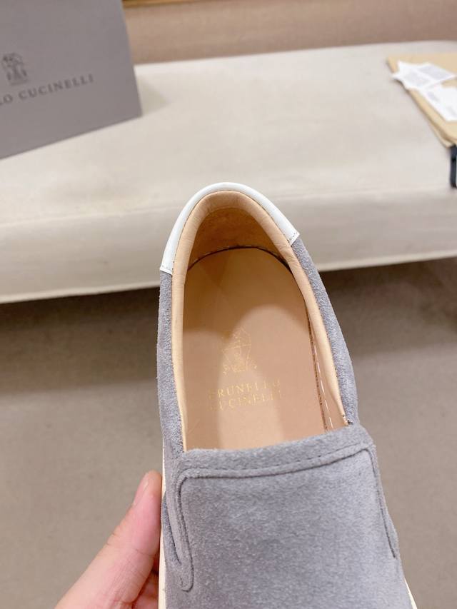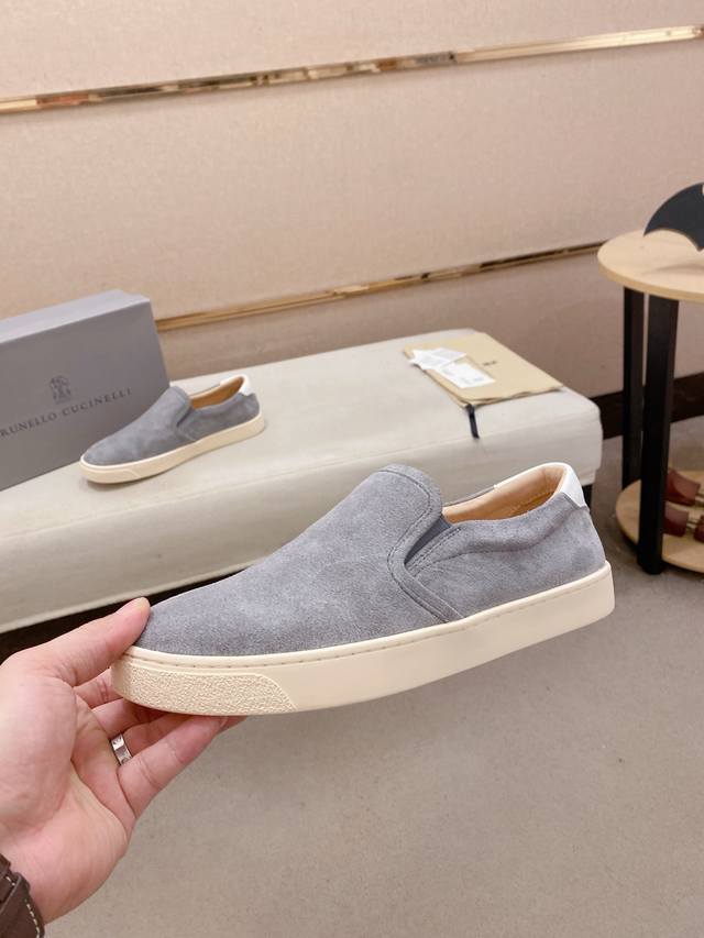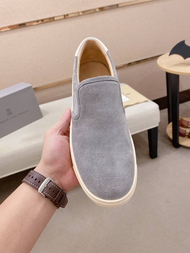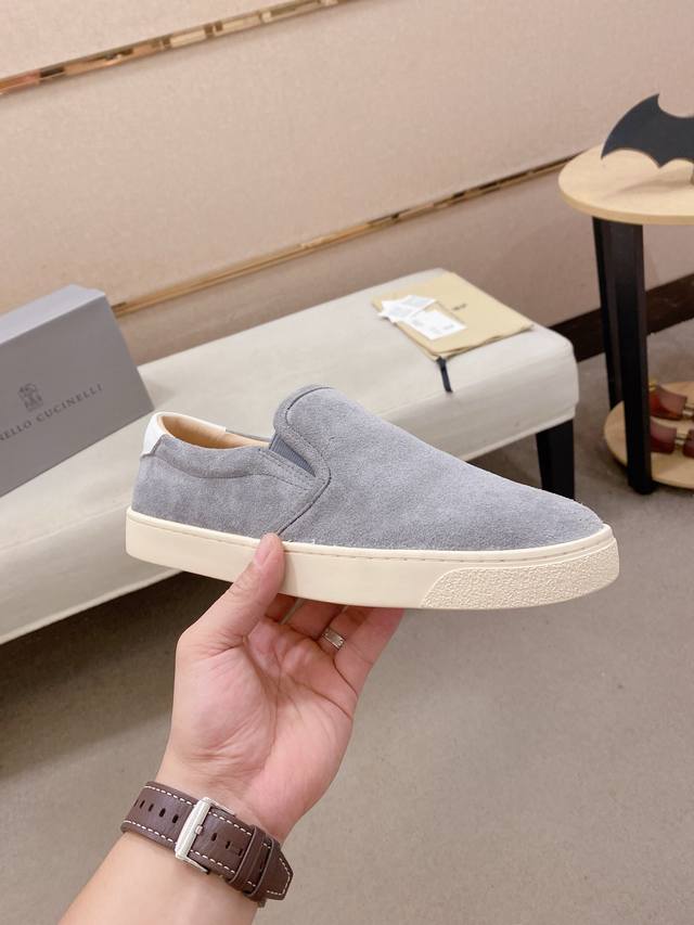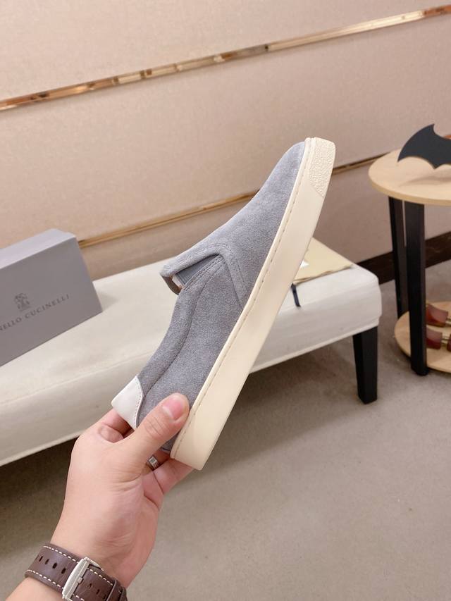 Factory direct, high-quality new Brunello Cucinelli men's shoes, available simultaneously with boutiques. Made with premium top-grain cowhide and suede uppers, featuring a breathable mesh upper and top-grain cowhide lining. Original molded anti-slip rubber outsole. Exquisite lines, simple yet stylish design, comfortable and high-end, perfect for casual wear and travel. Sizes: 38-44. 45 custom-made.